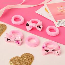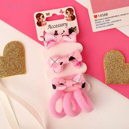 Резинка для волос "Нэнси" (набор 6 шт) бантики сердечки, розовый