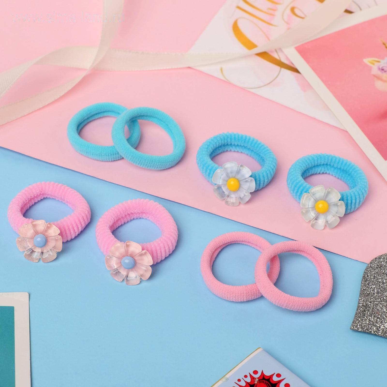 Резинка для волос "Шелли" (набор 8 шт) ромашки, розово-голубой