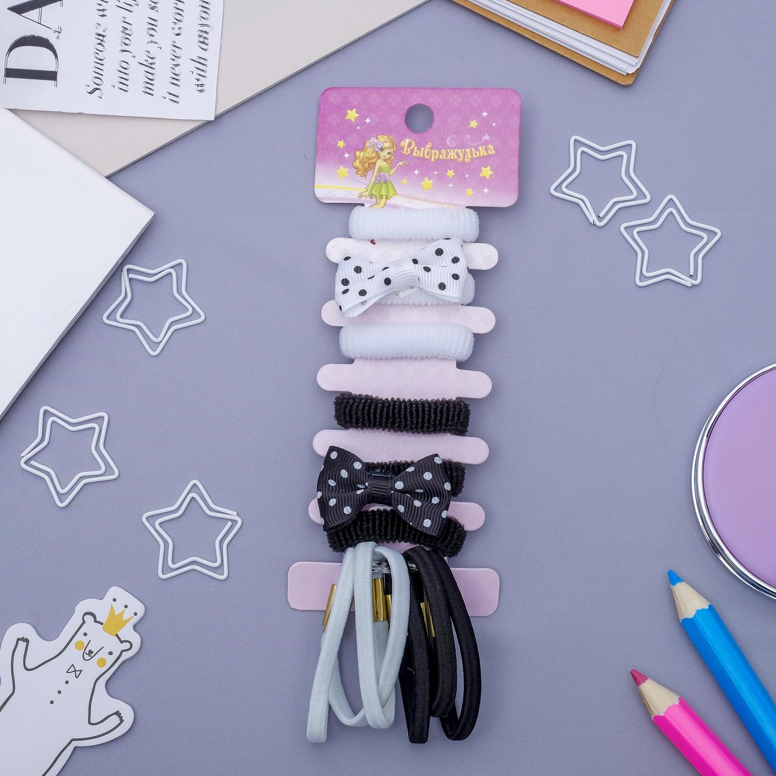 Резинка для волос "Бантик" (набор 12 шт) горох, чёрно-белый