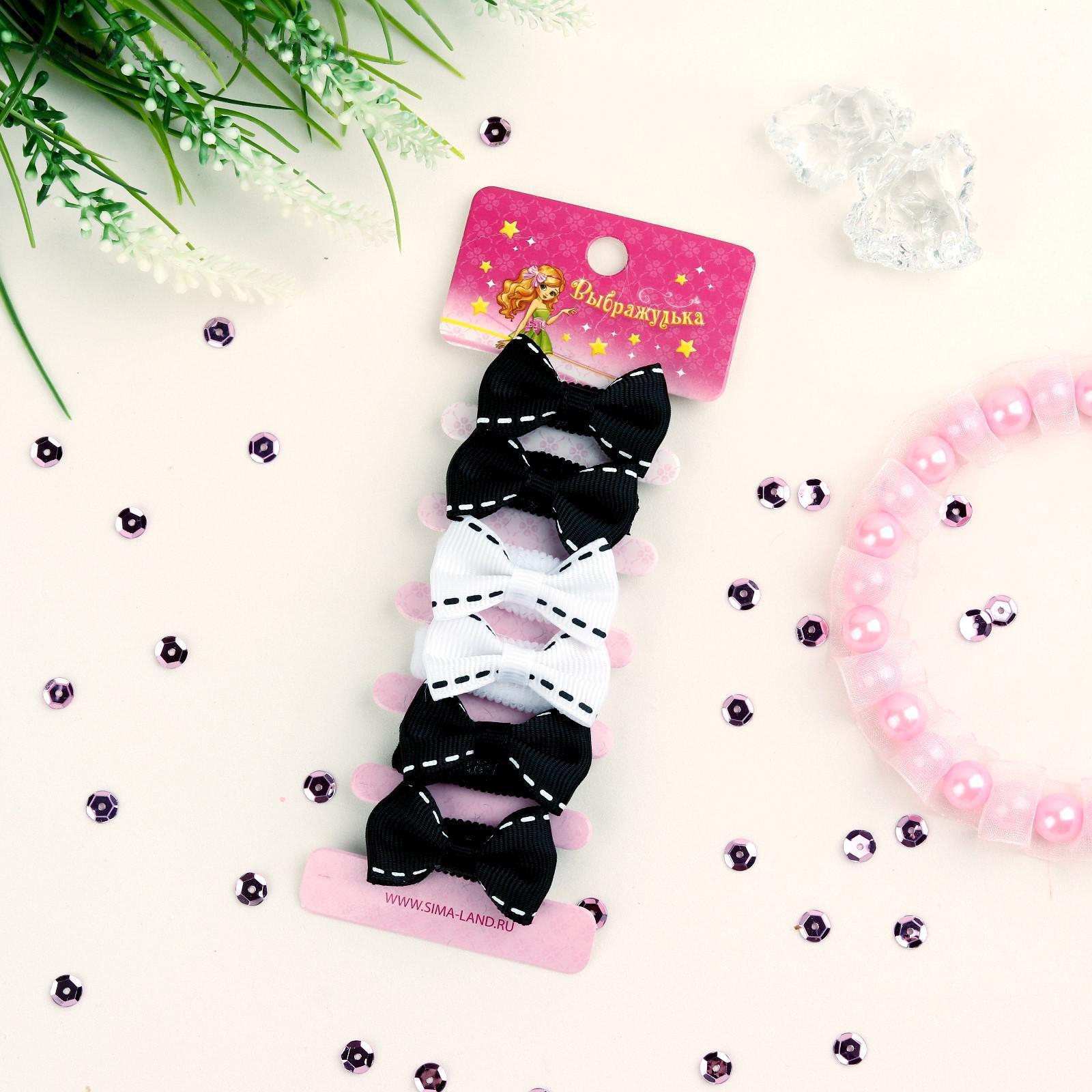 Резинка для волос "Бантик" (набор 6 шт) строчка, чёрно-белый