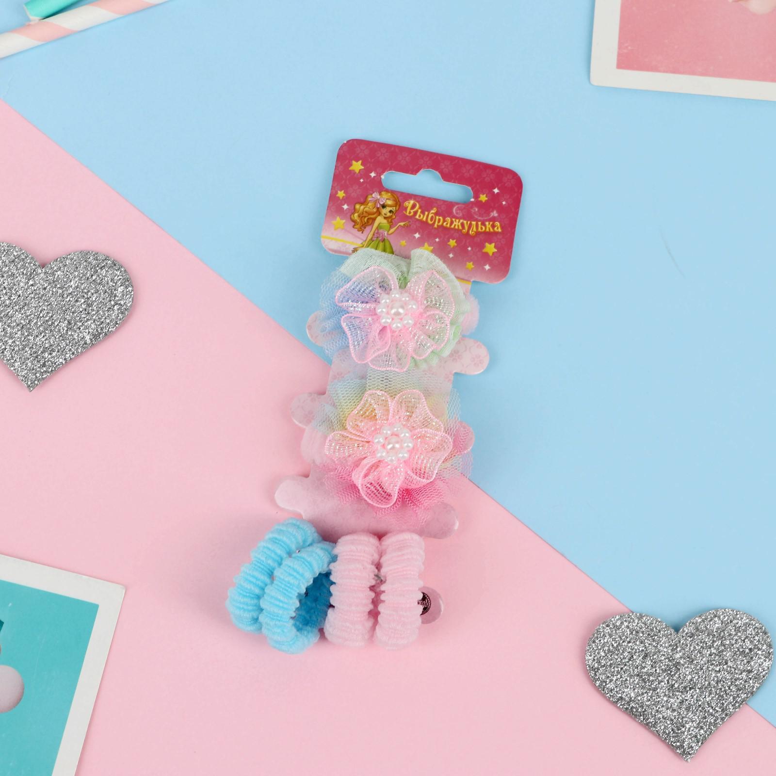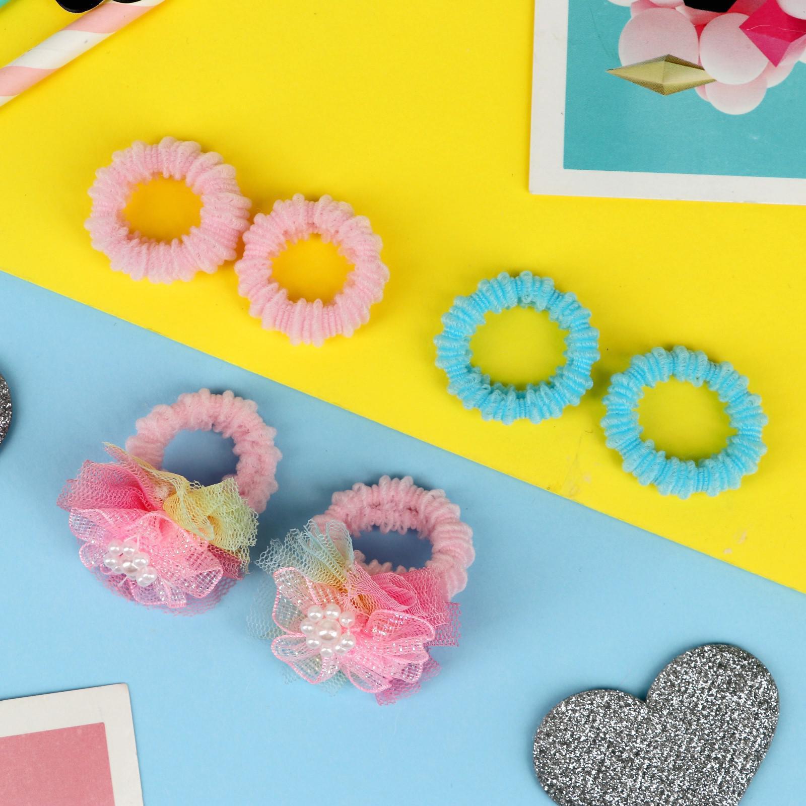 Резинка для волос "Кружево" (набор 6 шт) цветок, розово-голубой