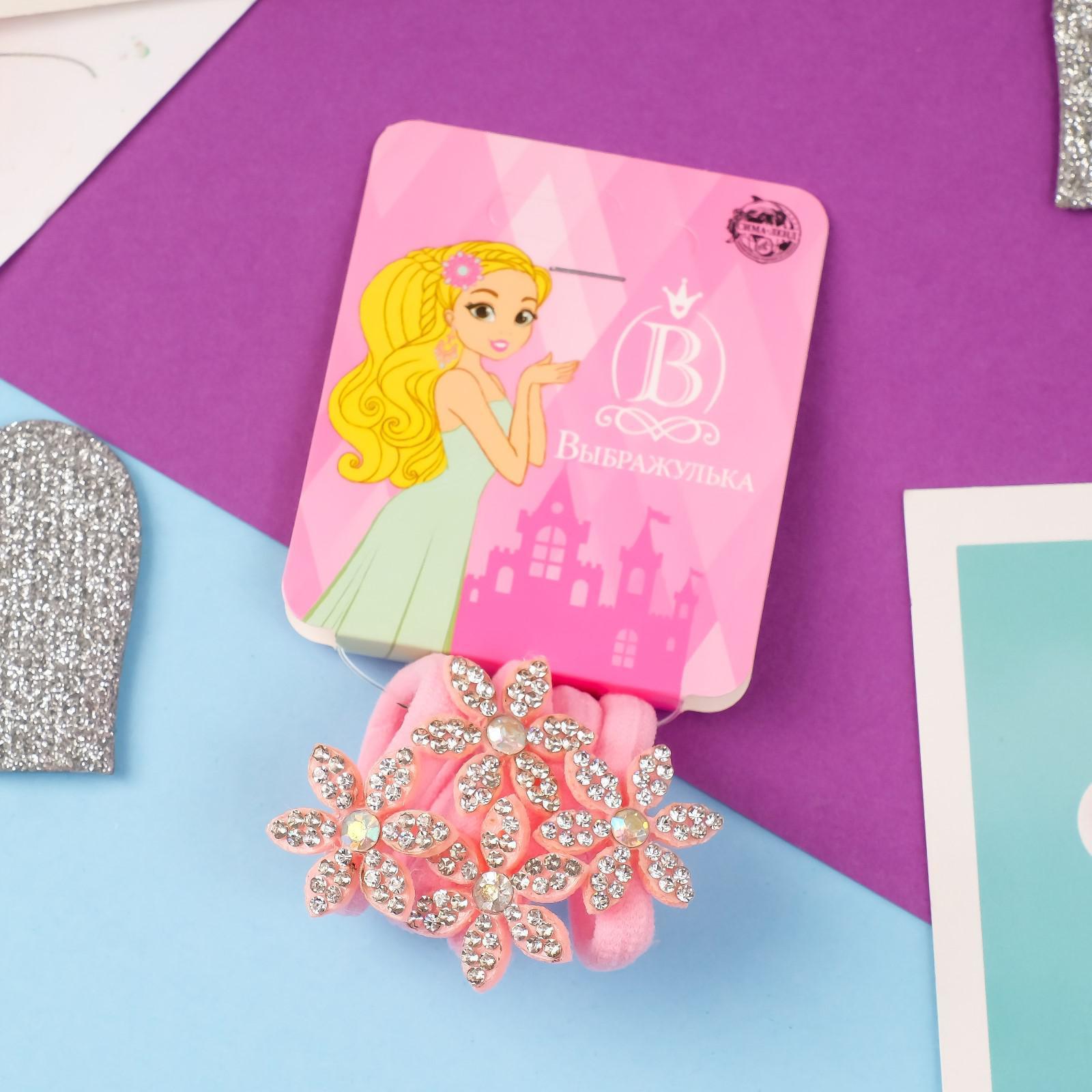 Резинка для волос "Розовый перелив" (набор 4 шт) цветочки, розовый