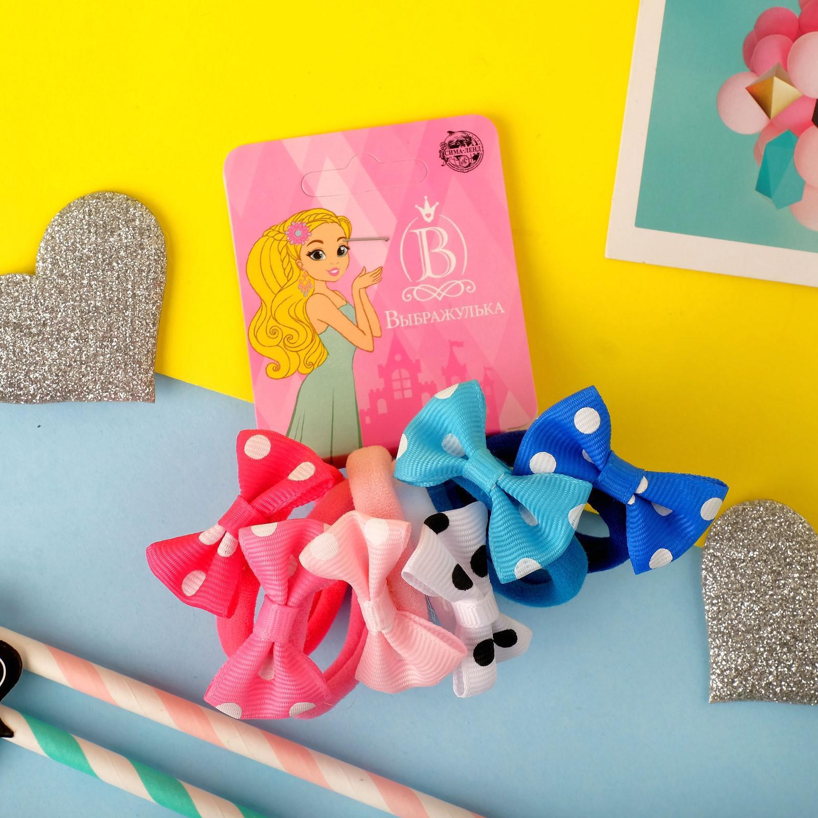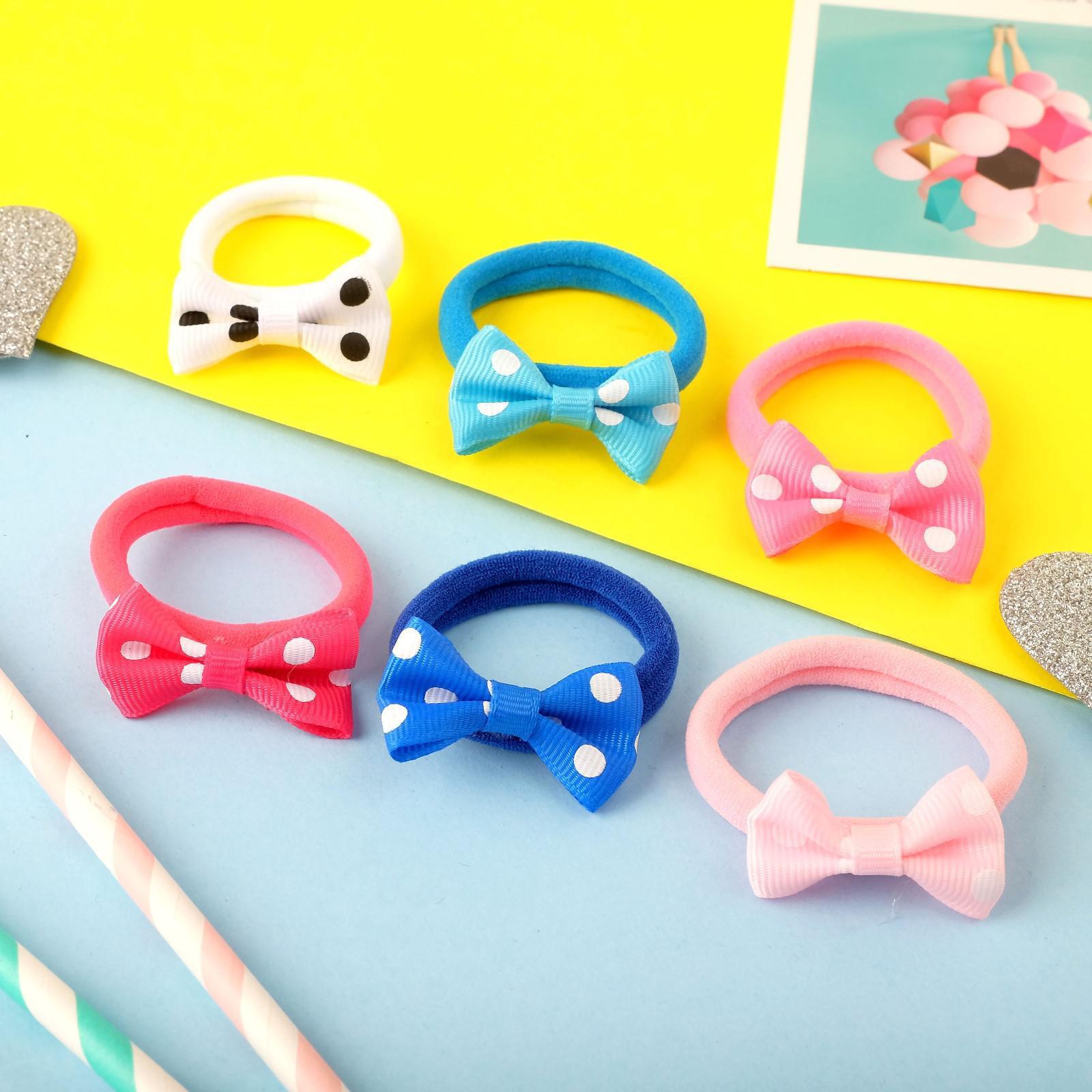 Резинка для волос "Бантик" (набор 6 шт) горошек, микс