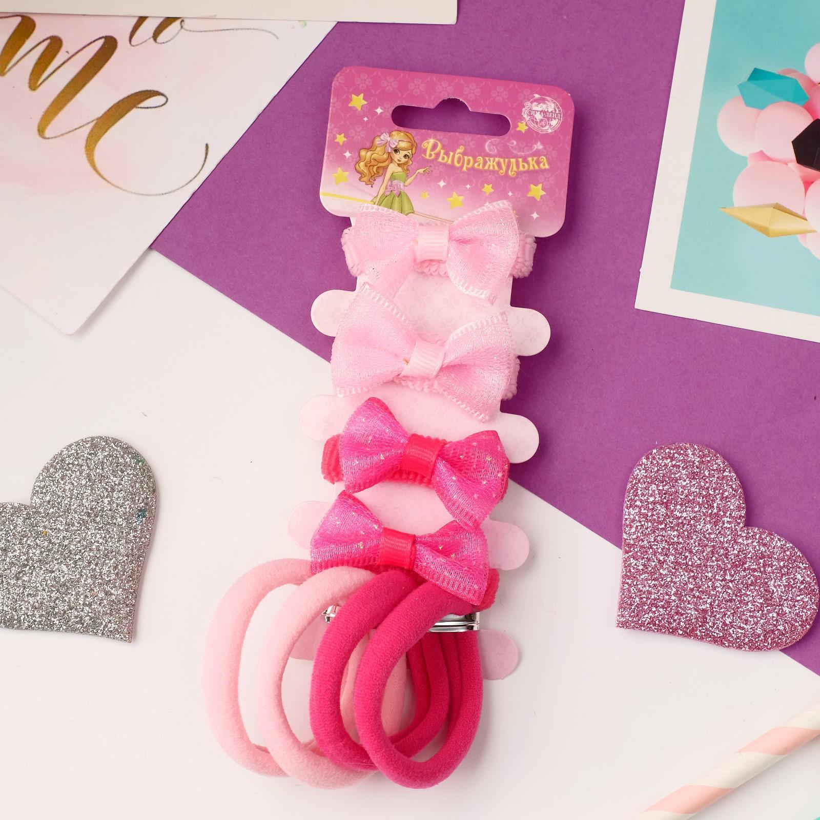 Резинка для волос "Бантик" (набор 8 шт) блеск, розовый