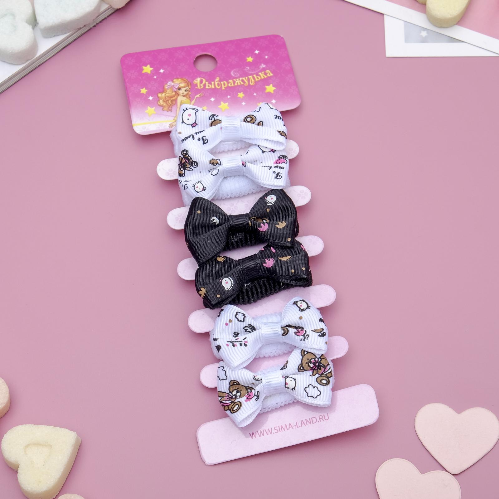 Резинка для волос "Бантик" (набор 6 штук) мишки, чёрно-белый
