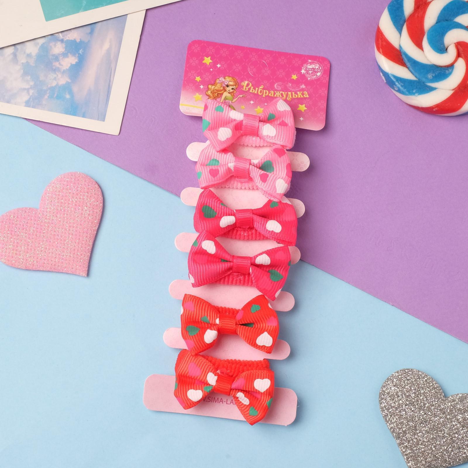 Резинка для волос "Глория" (набор 6 шт) крупные сердечки, красно-розовый