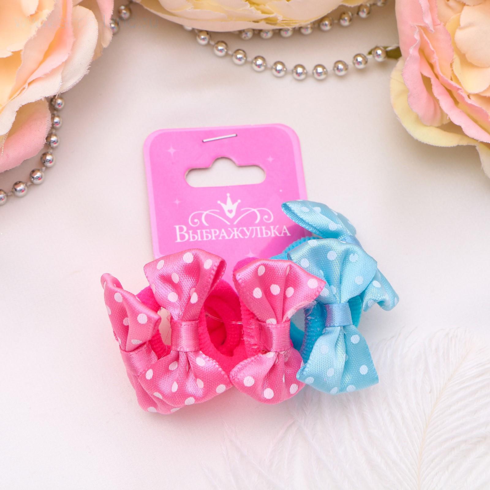 Резинка для волос "Бантик" (набор 5 шт) горошек, микс