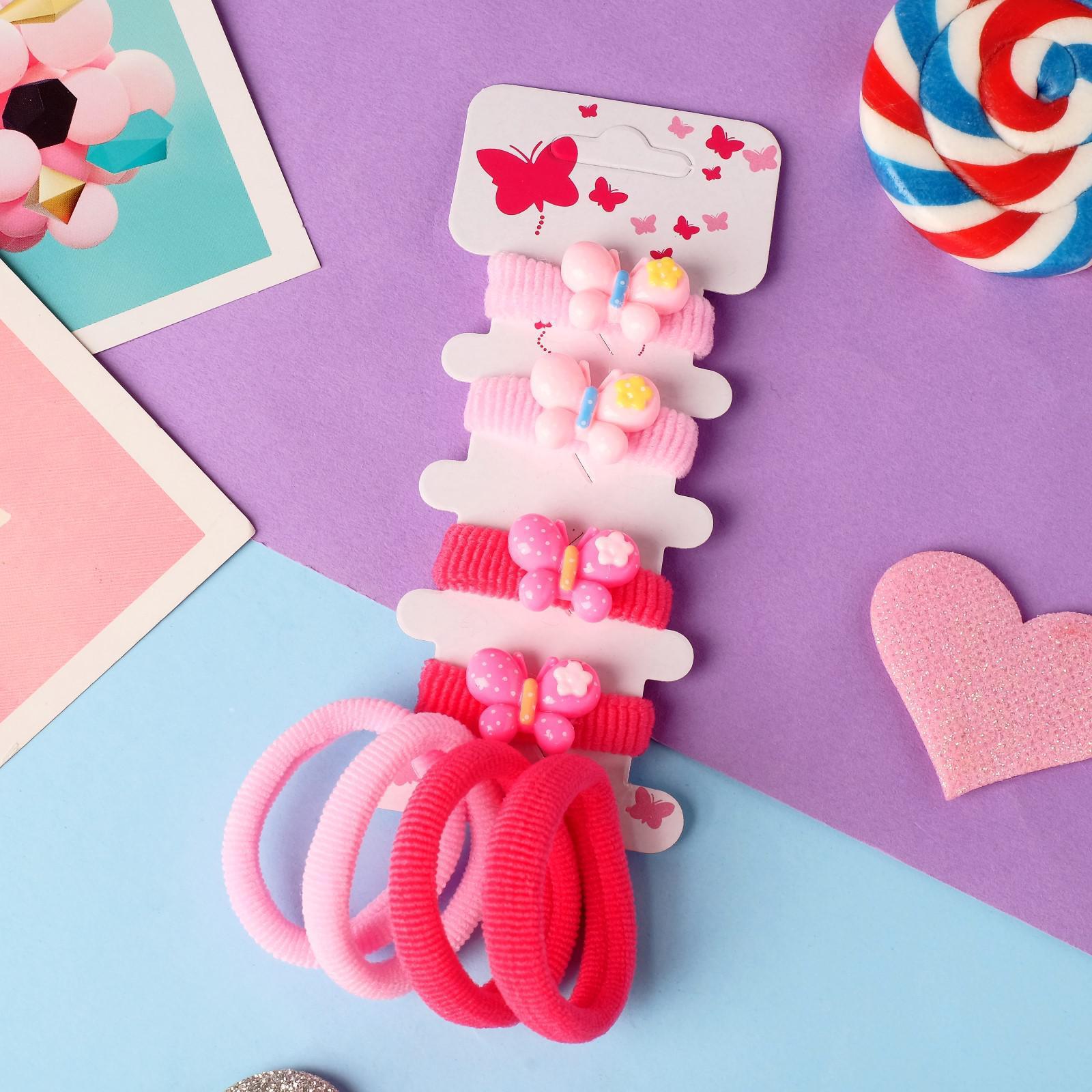 Резинка для волос "Иветта" (набор 8 шт) бабочки, 4 см, розовый