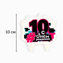 Свеча для торта "С Днем рождения" ,10 лет,трендовая, 10×10 см