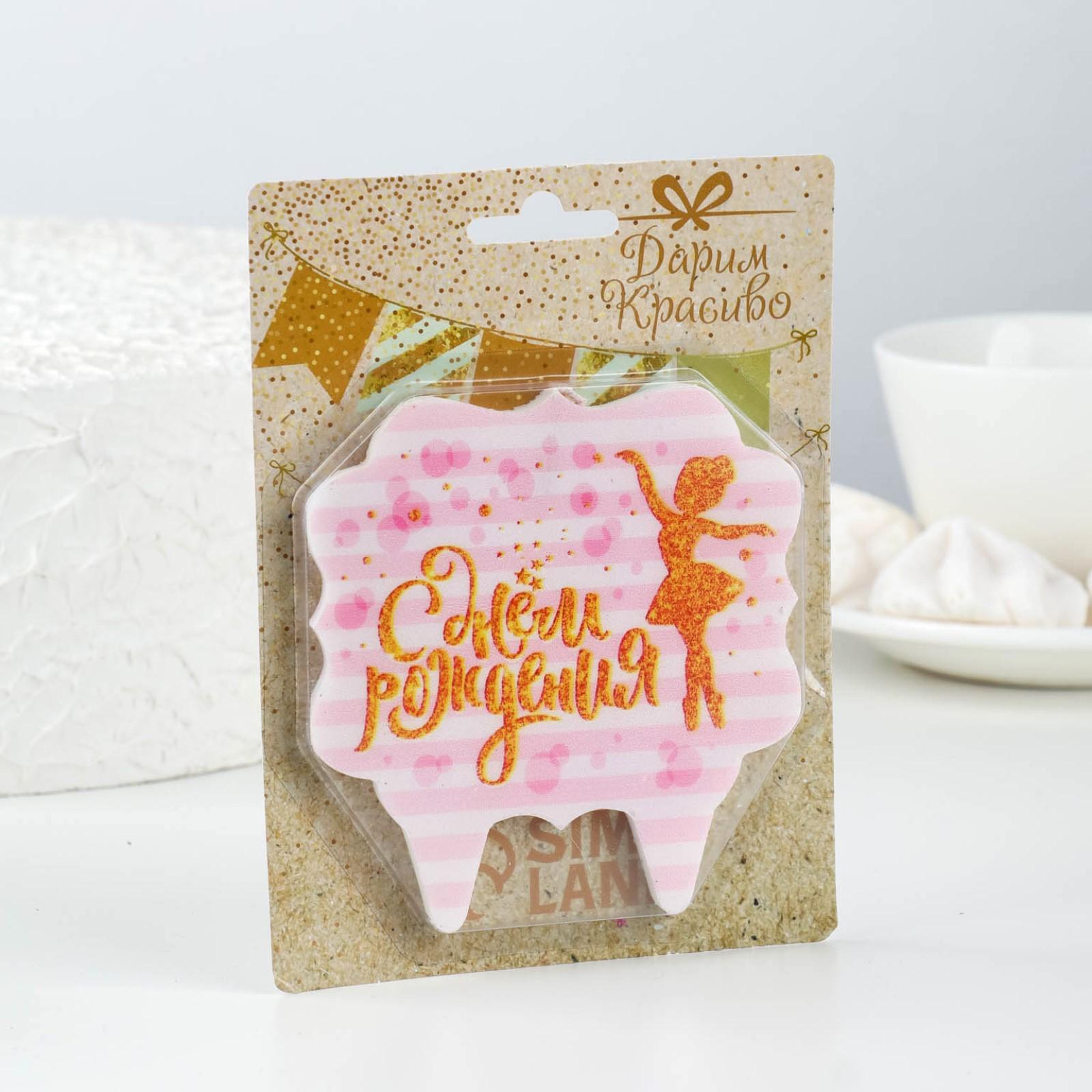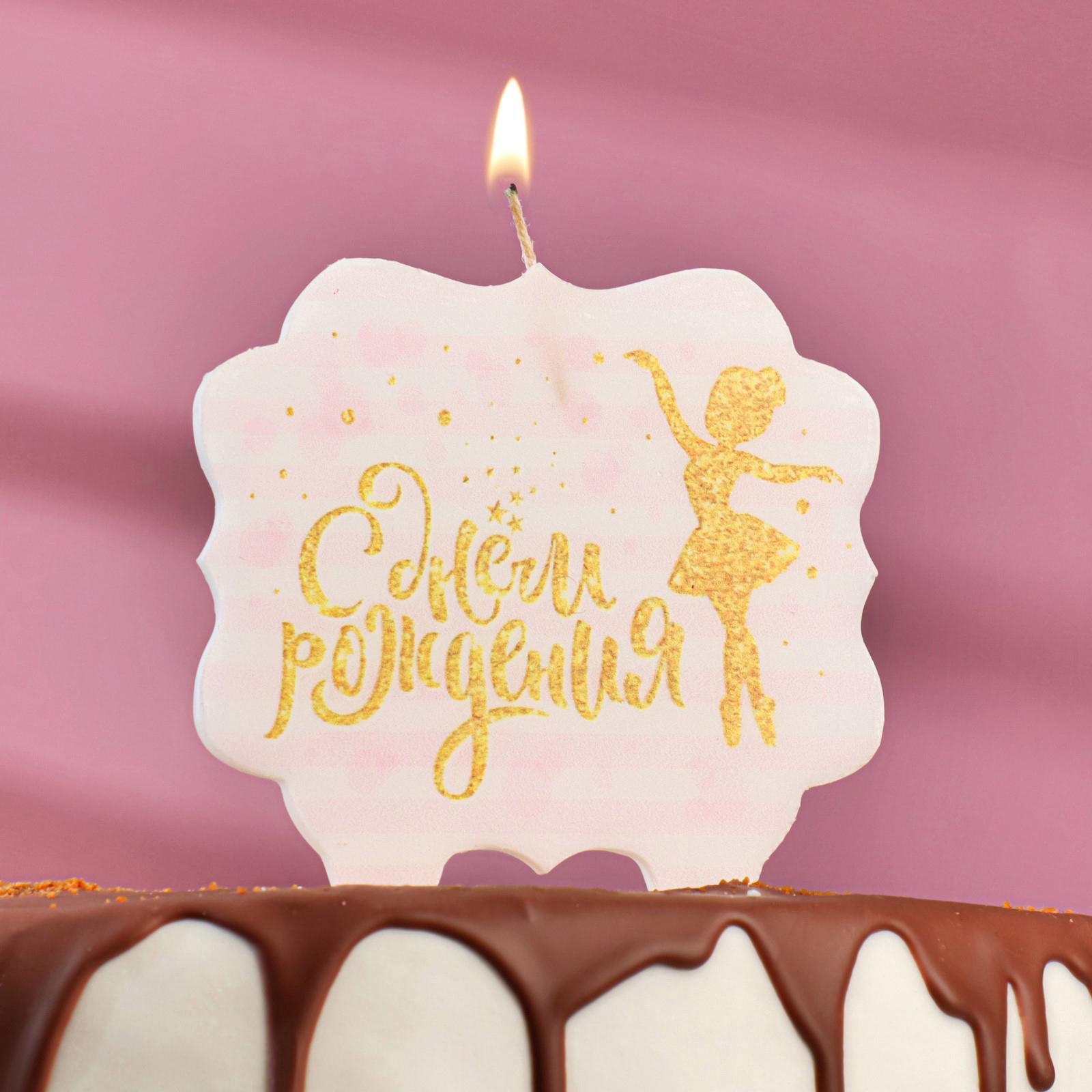 Свеча для торта «С Днём Рождения. Золотая балерина», 10×10 см