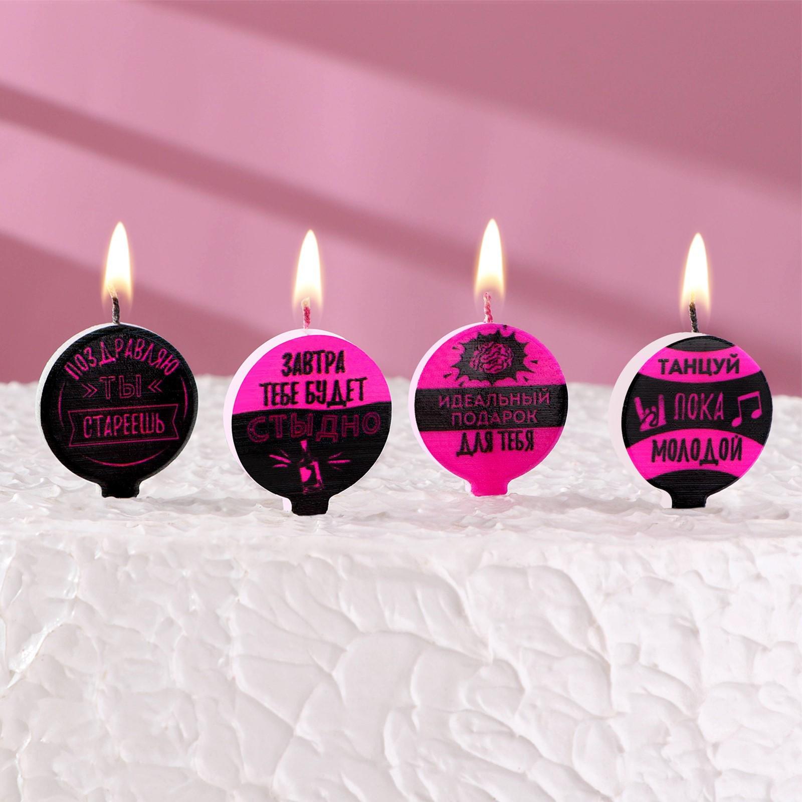 Набор свечей 4 штук "С юмором", розово-чёрные, 4×4.4 см