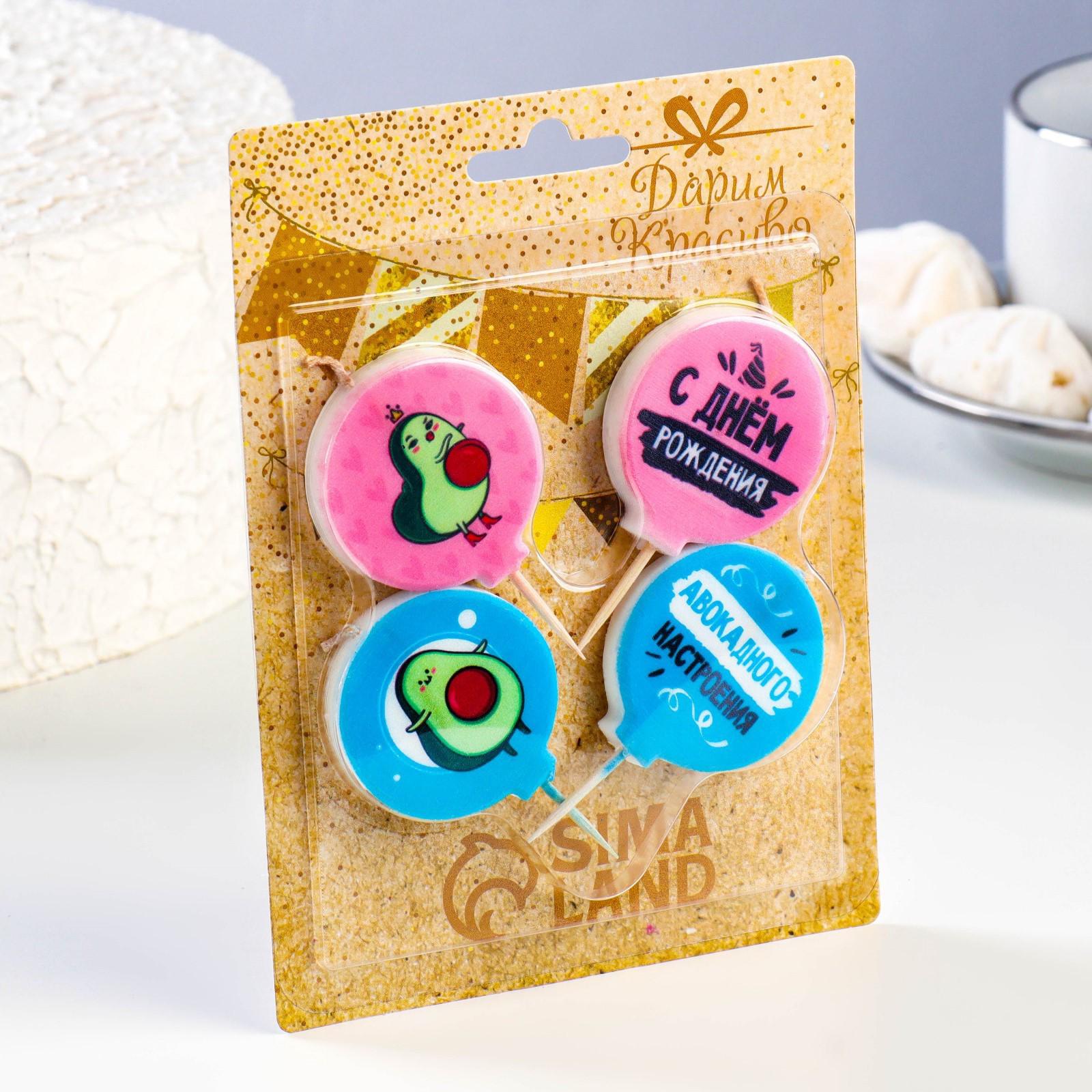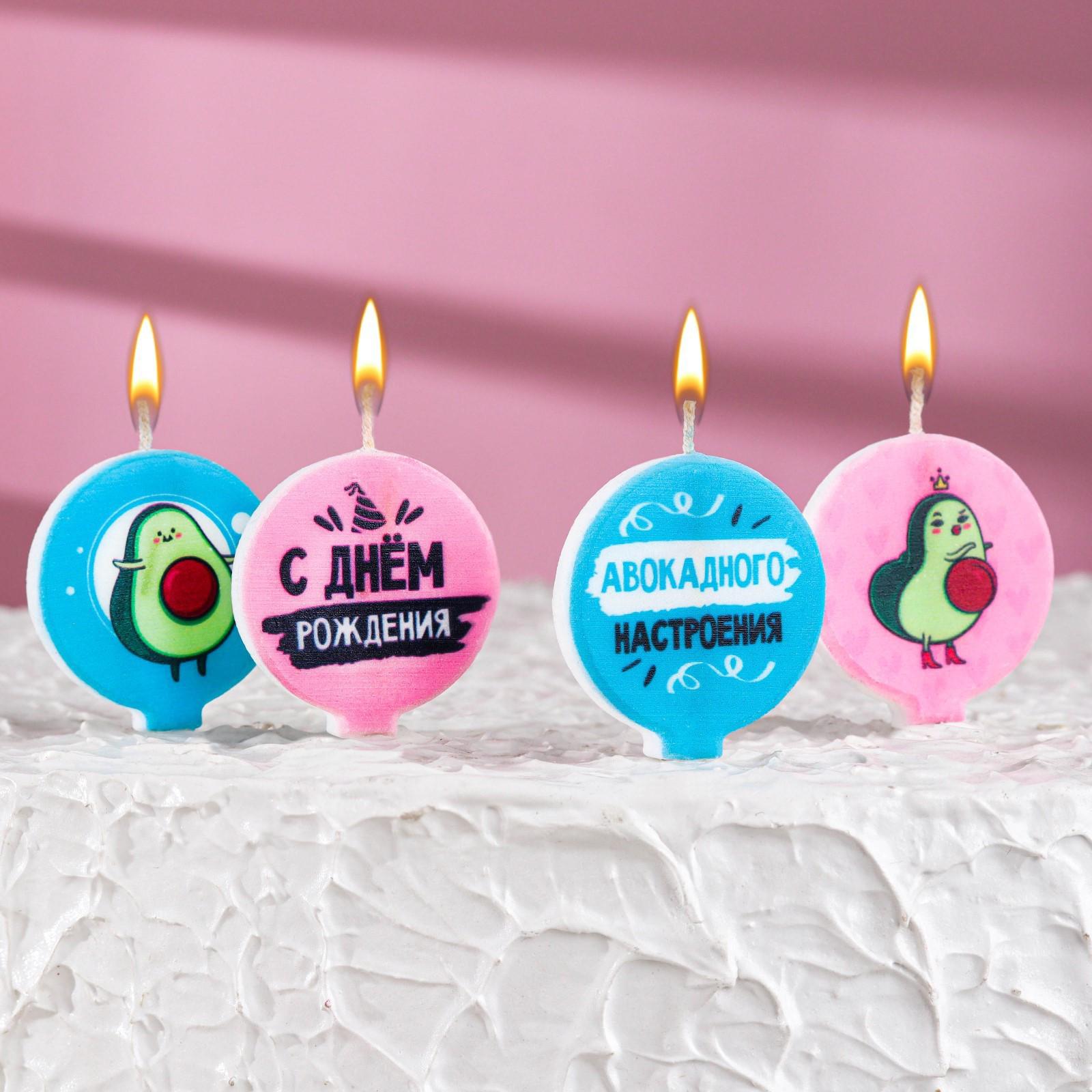 Набор свечей для торта "С днем рождения", авокадо, 4х4,4 см, 4 шт