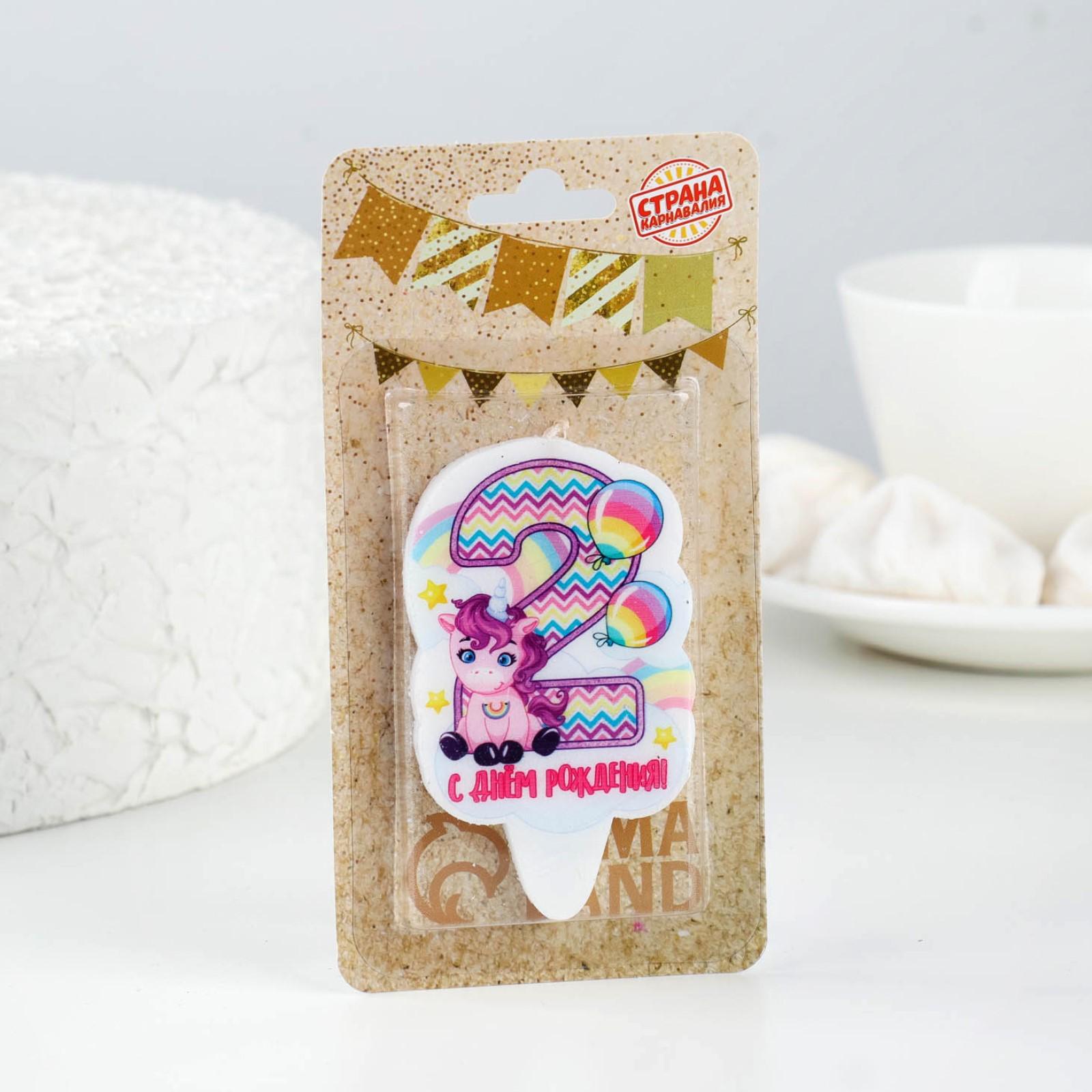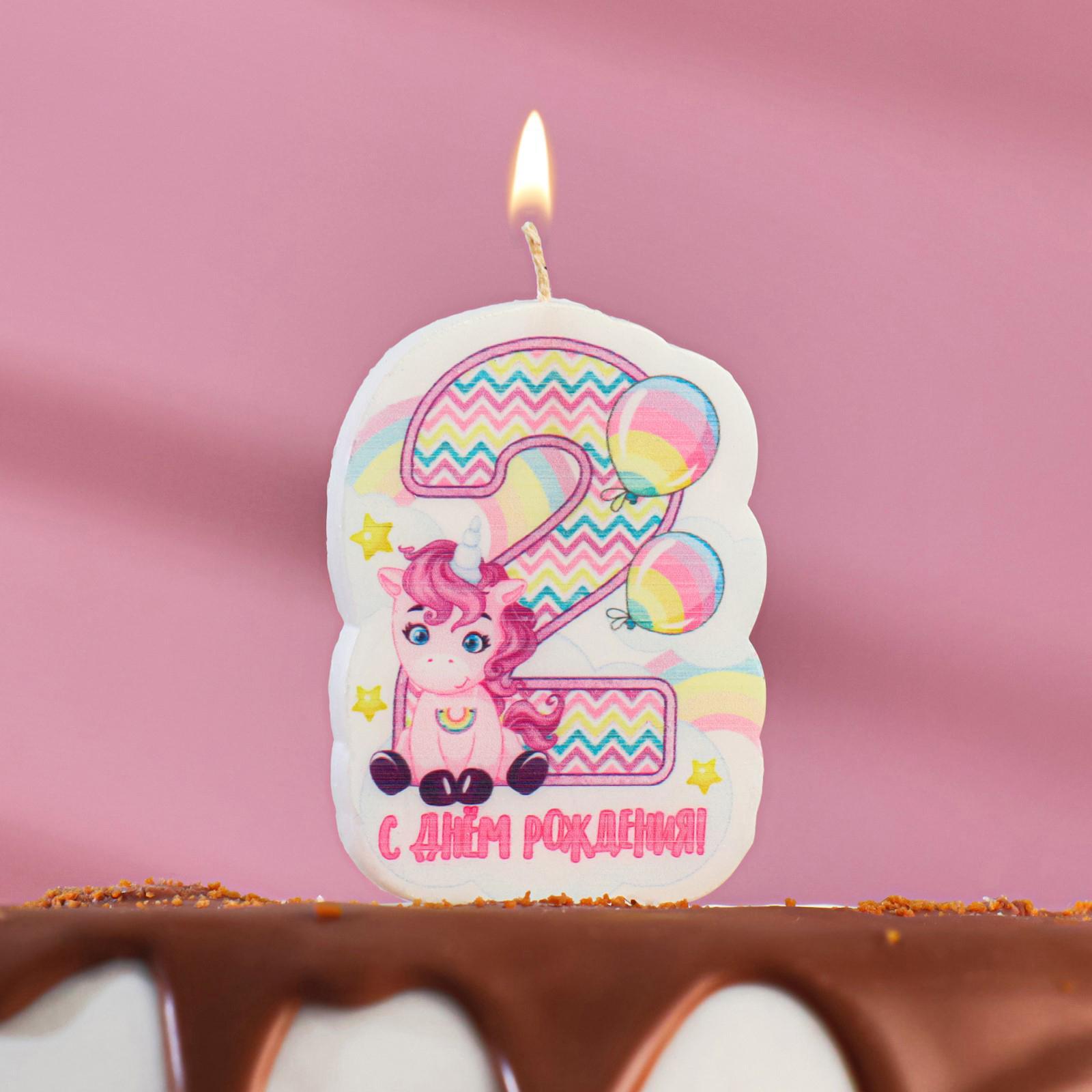 Свеча для торта "Цифра 2, розовый пони", 5×8.5 см