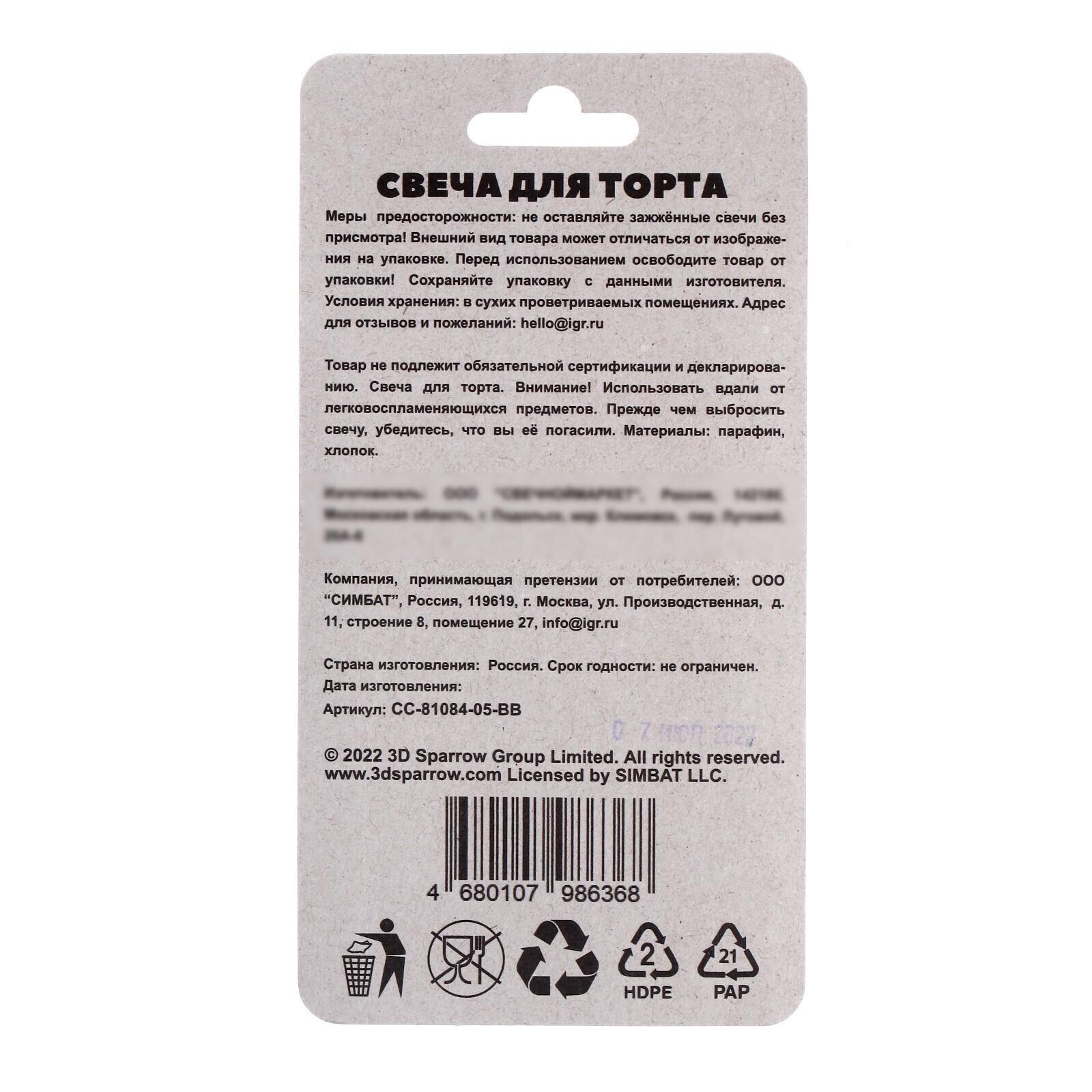 Свеча для торта со стикером «5. Буба» блистер, размер 5 х 8 см