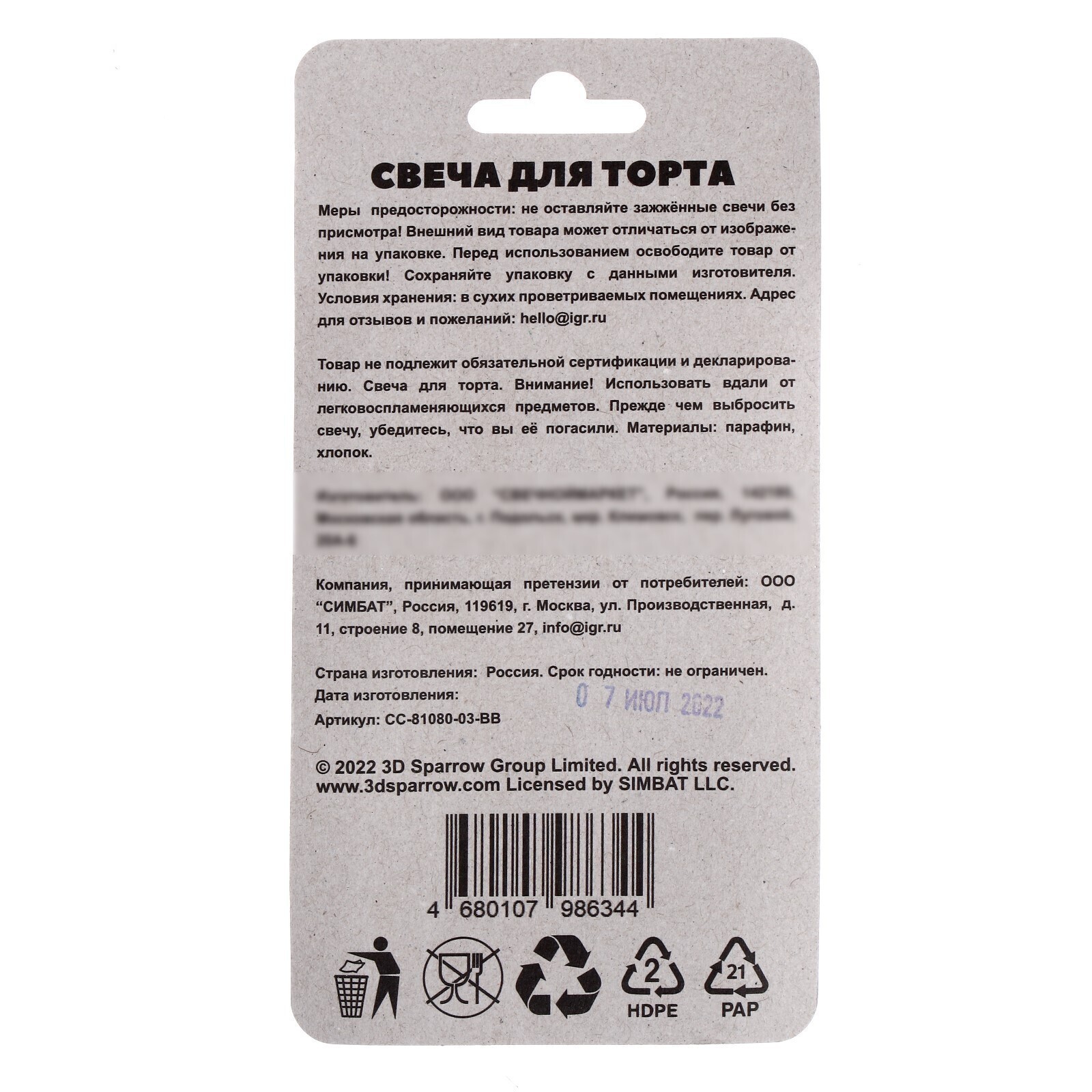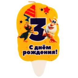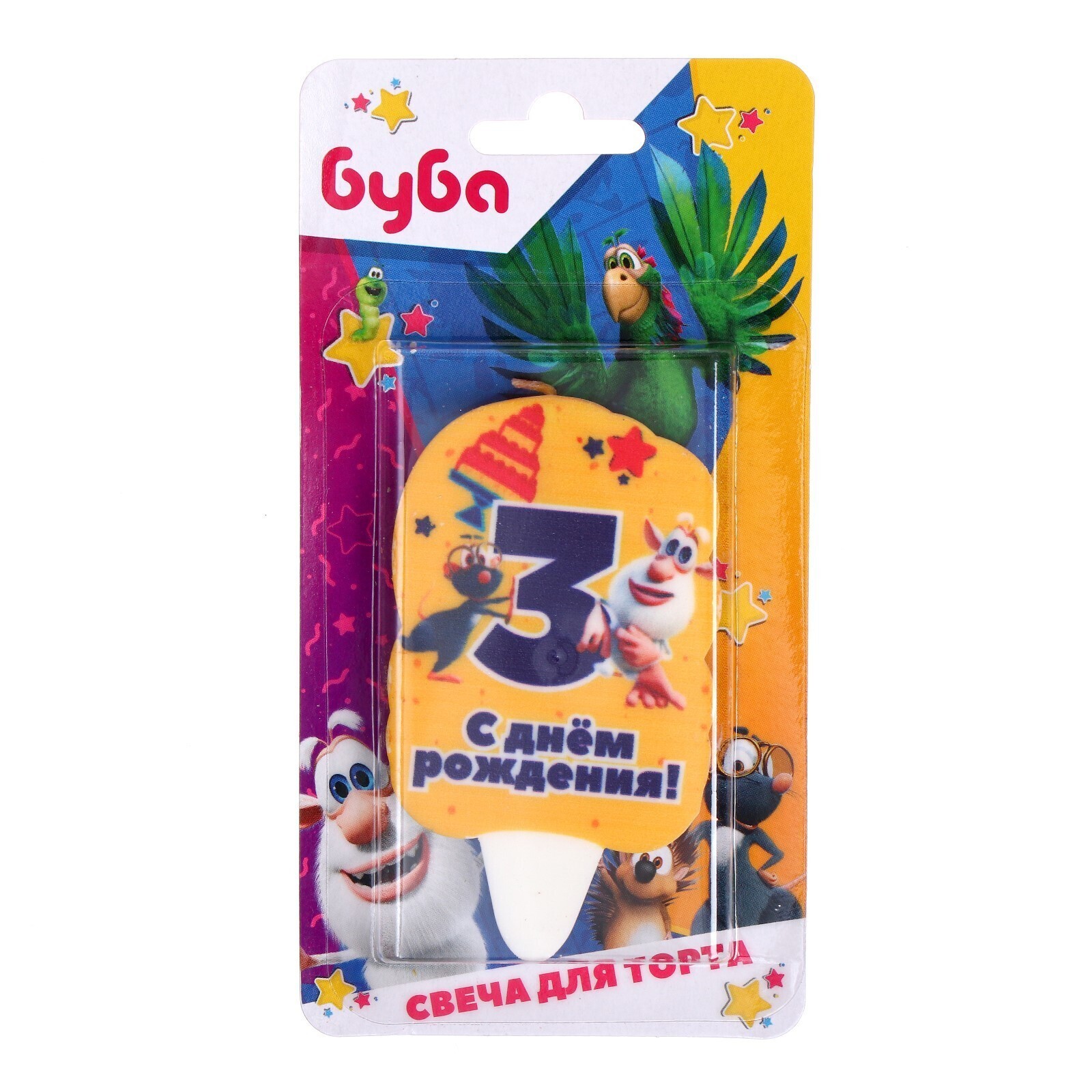 Свеча для торта со стикером «3. Буба» блистер, размер 5 х 8 см