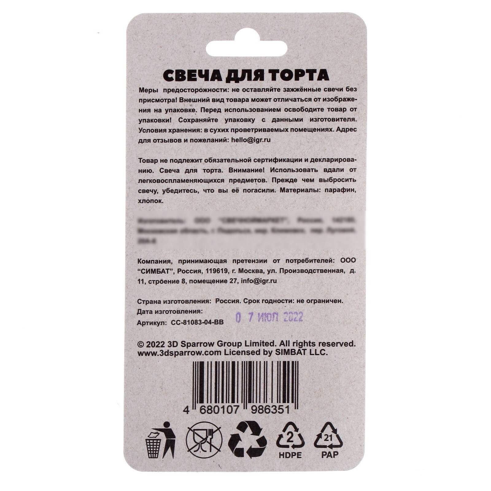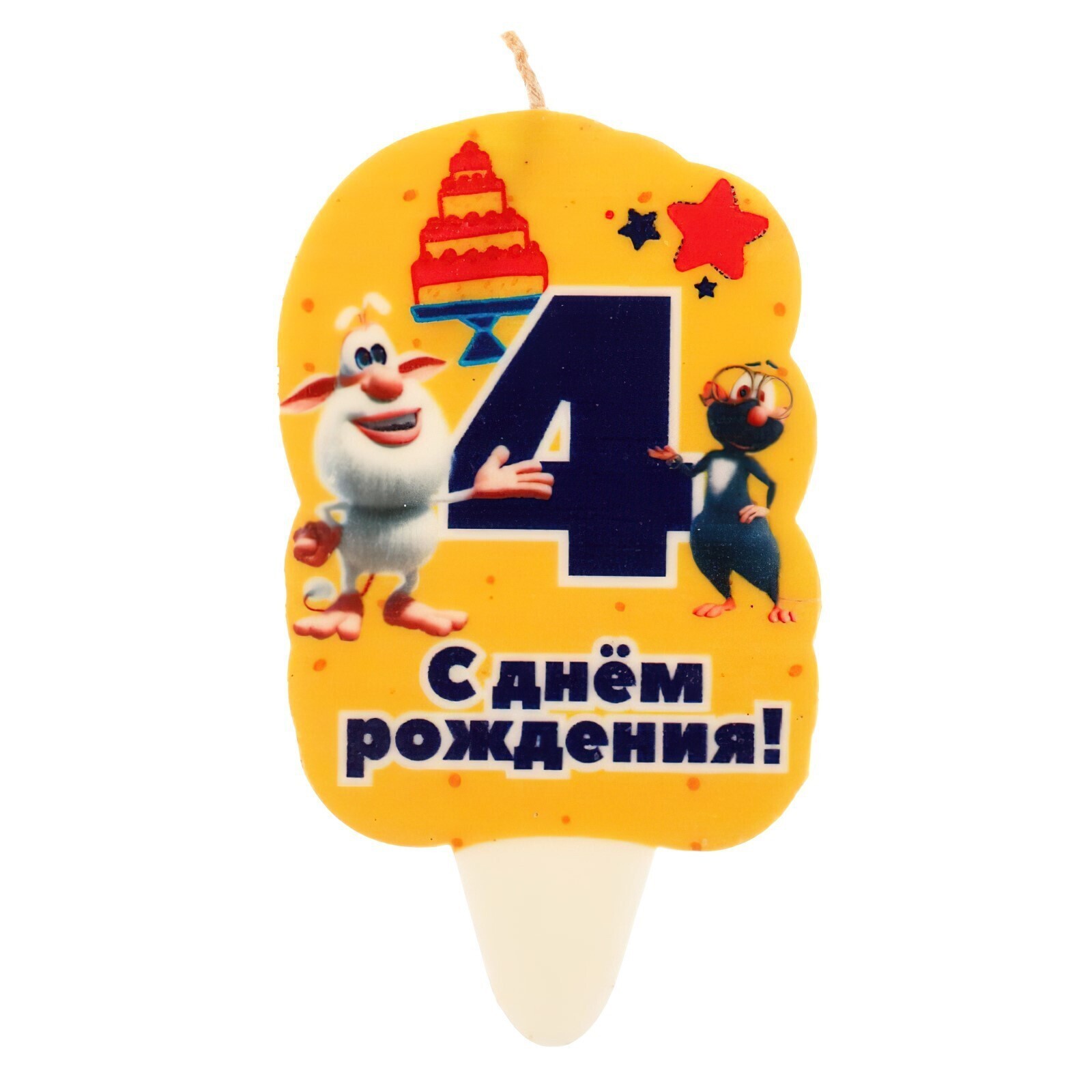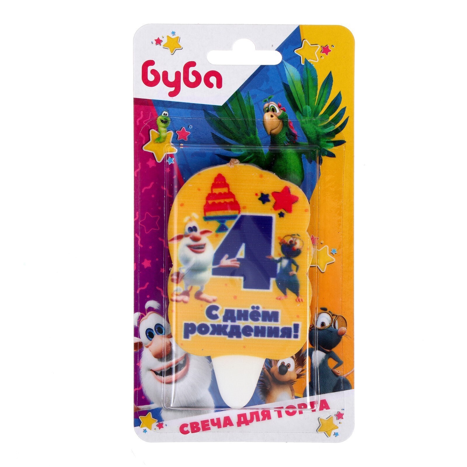 Свеча для торта со стикером «4. Буба» блистер, размер 5 х 8 см