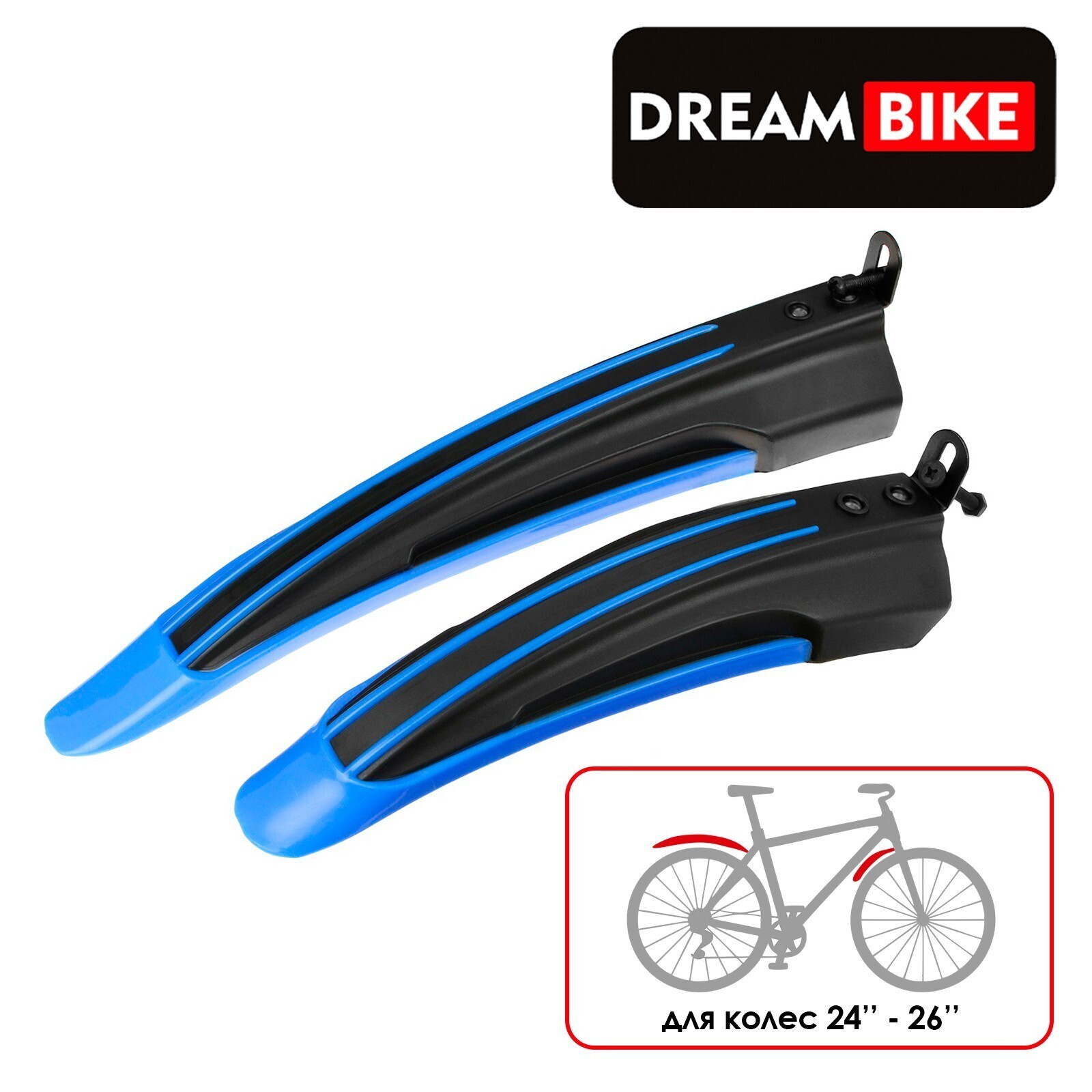 Комплект включает в себя 2 крыла: переднее и заднее. Крылья изготовлены из пластика и стали, предназначены для подростковых и взрослых велосипедов.