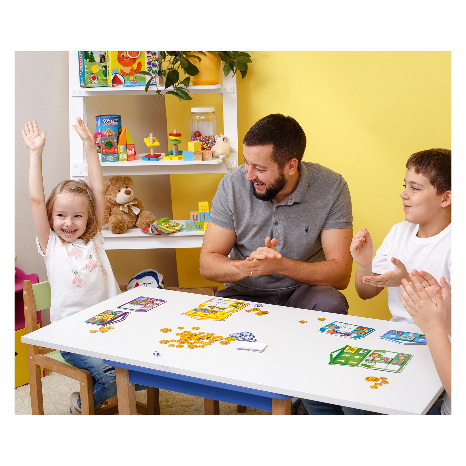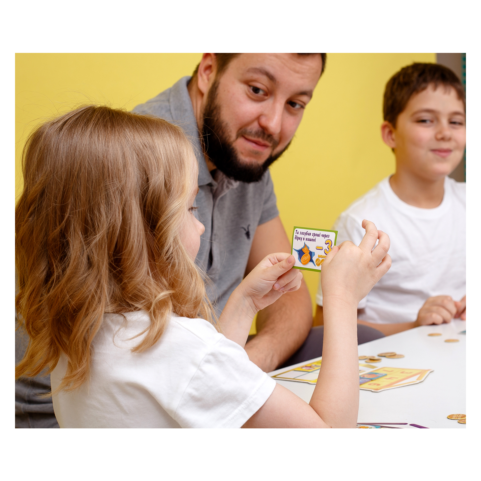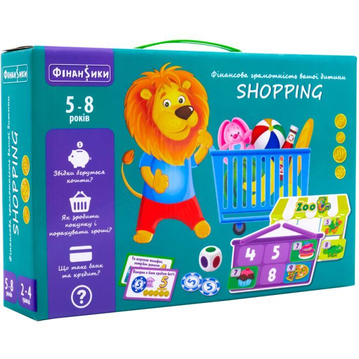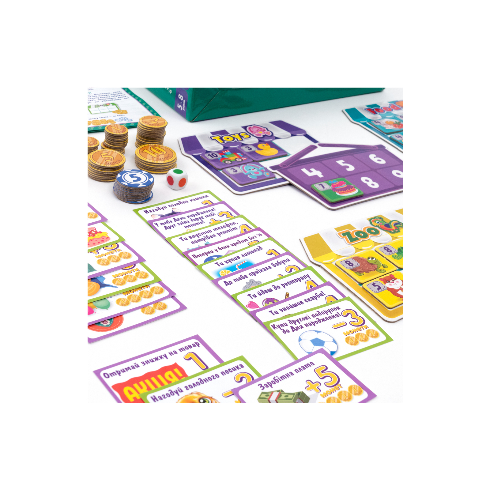 Звідки беруться кошти? Як зробити покупку і порахувати гроші? Що таке банк та кредит? Давайте грати та навчатися разом! Спробуйте себе відразу в ролі і продавця, і покупця. Кожен учасник гри — власник магазину. Заробляйте та отримуйте гроші, заповнюйте свій кошик для продуктів наввипередки і перемагайте! В процесі гри дитина підвищить рівень фінансової грамотності та потренує логічне мислення, увагу та комунікативні навички.