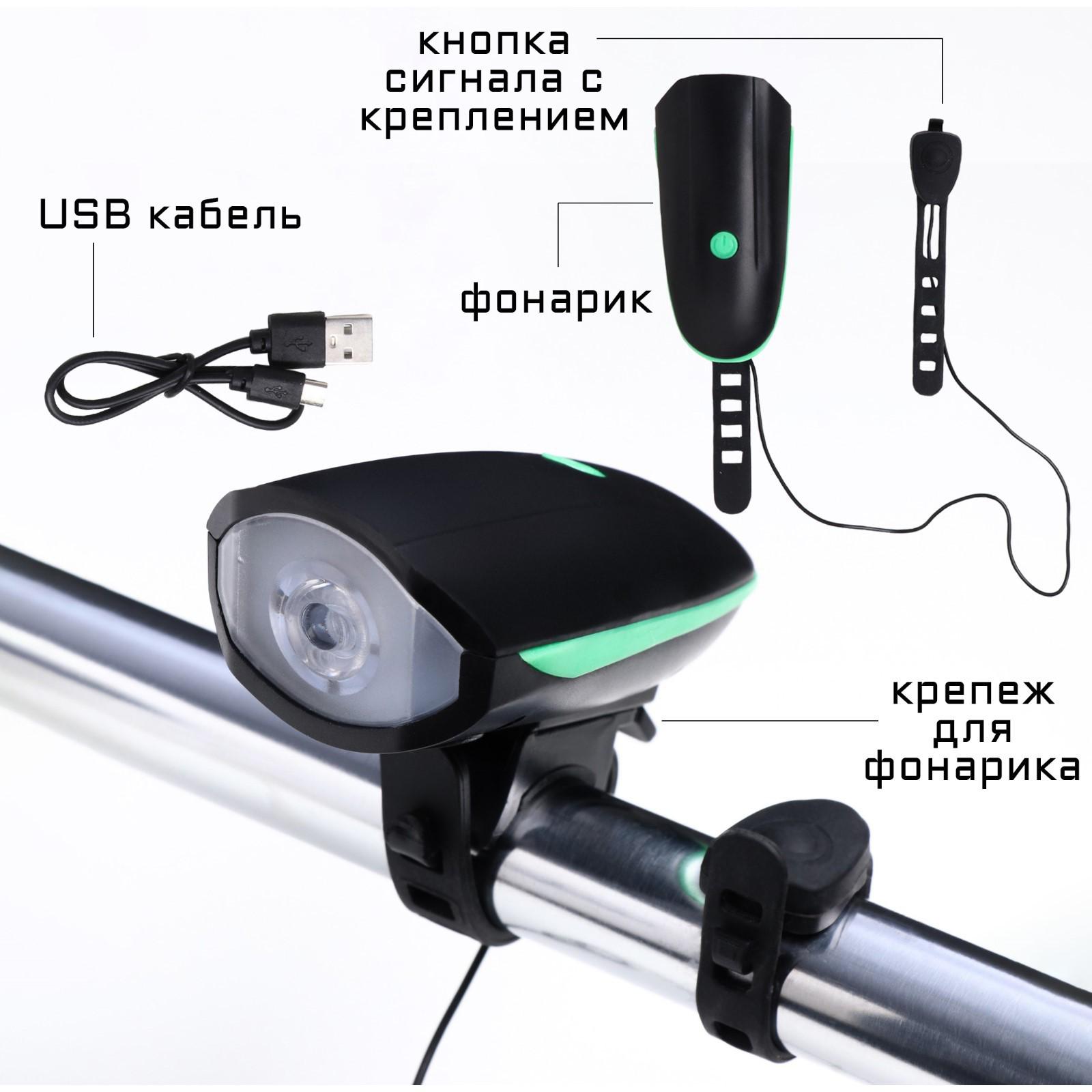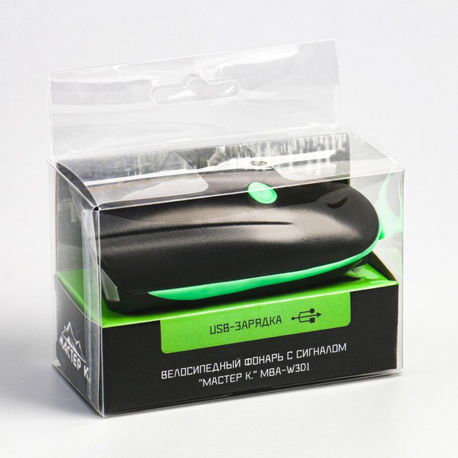 Фонарь велосипедный "Мастер К.", 3 режима, 2 Вт, 1200 мАч, с гудком, 10 х 5 х 5 см