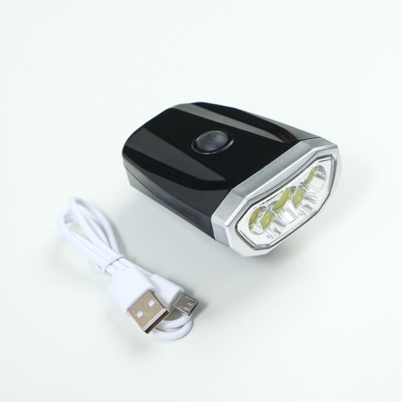 Фонарь велосипедный аккумуляторный, 1 Вт, 100 лм, 600 мАч, 6 led, 4 режима, от USB