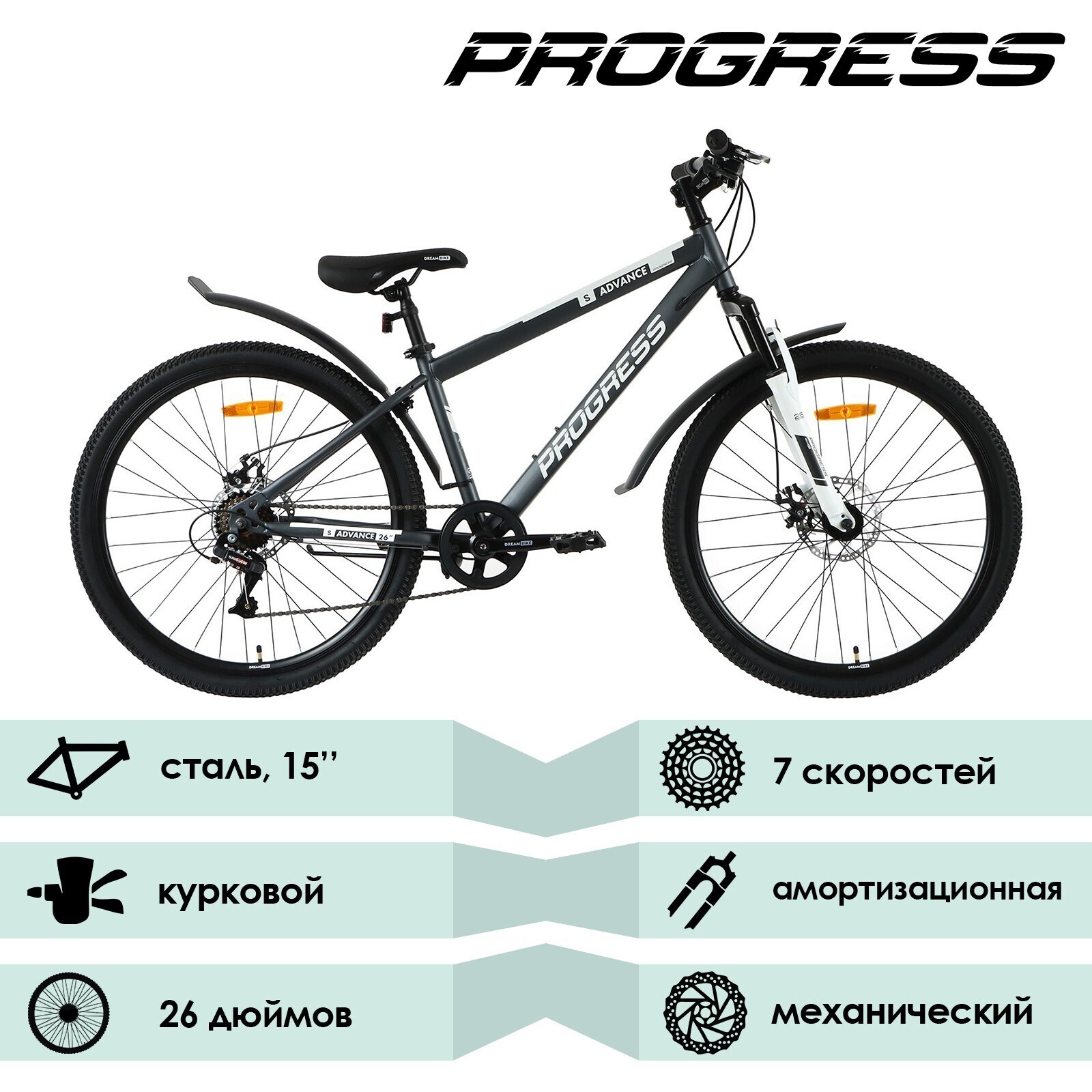 Велосипед 26" Progress Advance S RUS, цвет серый, размер рамы 15"