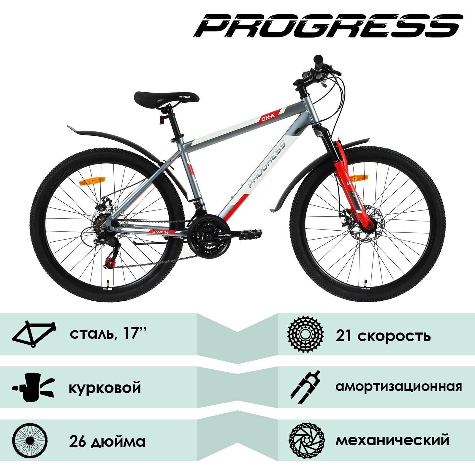 Велосипед 26" Progress ONNE RUS, цвет серый, размер рамы 17"