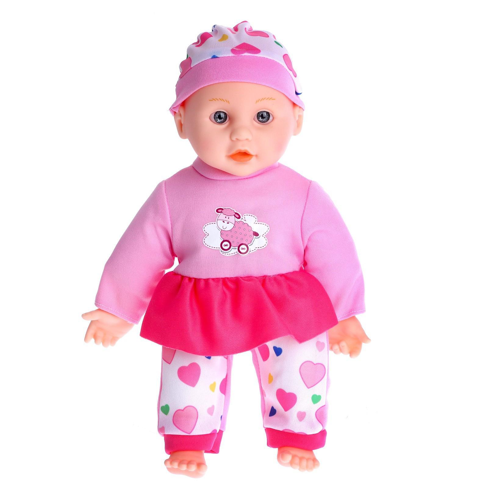 Пупс обязательно понравится ребёнку. Для работы игрушки нужны 3 батарейки типа LR44 (V13GA, AG13, LR1154), которые входят в комплект. Высота пупса: 30 см. Одежда снимается.