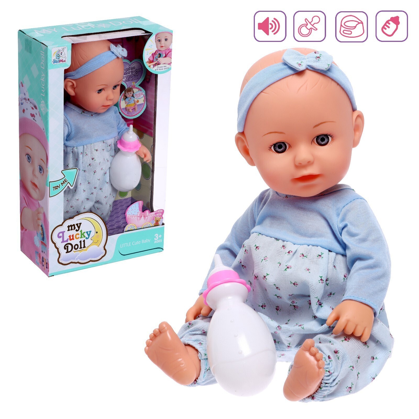 Пупс функциональный «Малыш» звук, пьёт, писает, с аксессуарами, МИКС