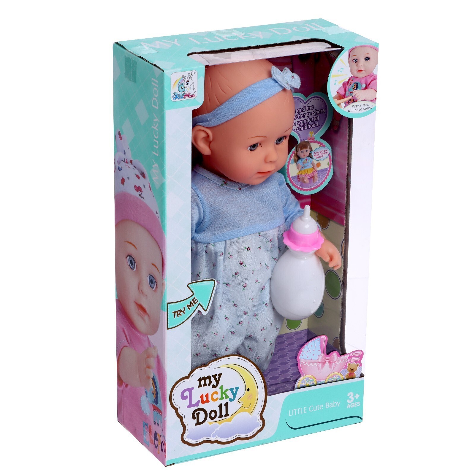В наборе с пупсом представлена бутылочка. Аксессуар и кукла выполнены из пластика — безопасного материала для малыша.