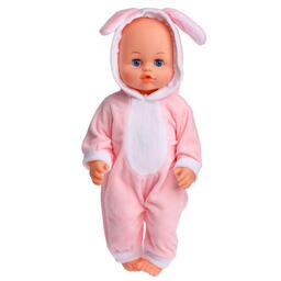 Высота куклы: 39 cм. Пупс музыкальный: говорит «мама», «папа», «агу», плачет, смеётся, чмокает, зевает, целует, кашляет, чихает, делает отрыжку. В комплекте 3 батарейки типа LR44 (V13GA, AG13, LR1154). Глаза закрывает, пьёт и писает.
