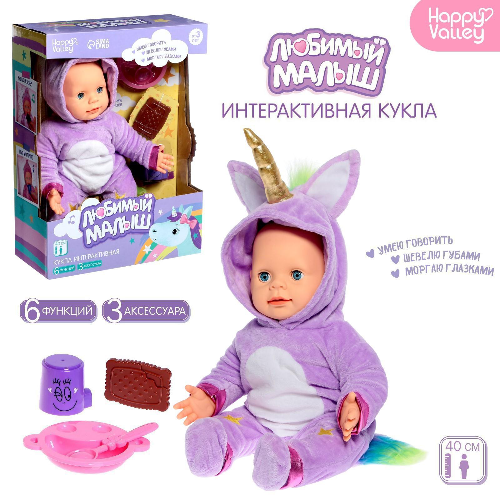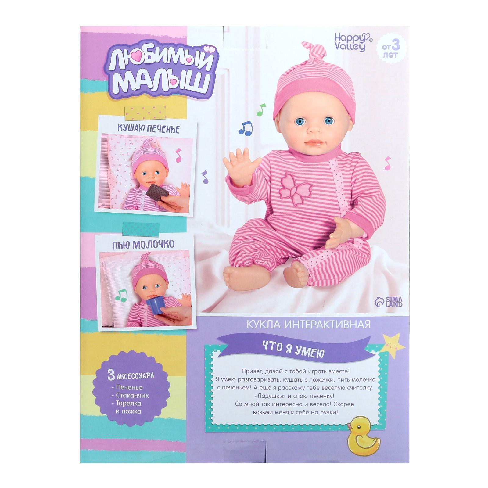 Интерактивный пупс «Малыш» 6 функций, озвученный, кушает, пьёт, играет в «ладушки» высота 40 см