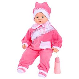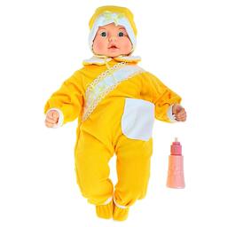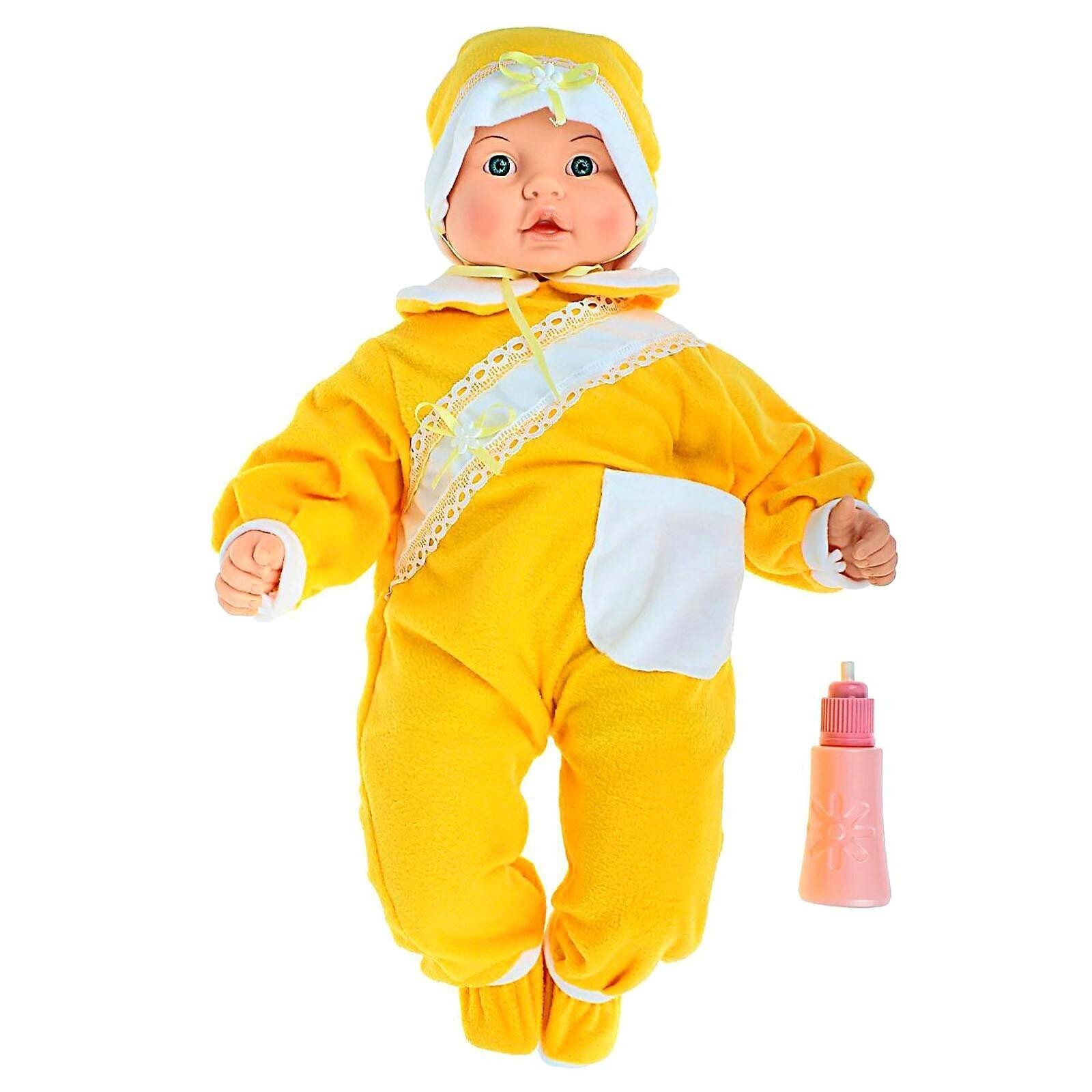 Девочка всегда сможет поделиться с новой подружкой своими секретами, ведь она лучше других умеет их хранить! А ещё, мягконабивную куклу можно брать с собой в кроватку и спать с ней в обнимку, как с плюшевой игрушкой. Звуковой модуль находится в бутылочке, которая имеется в комплекте с куклой. Если поднести бутылочку ко рту куклы и нажать на неё, то послышится звук плача ребёнка, звук сосания из бутылочки, радостный смех и слоги «ма-ма».