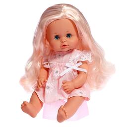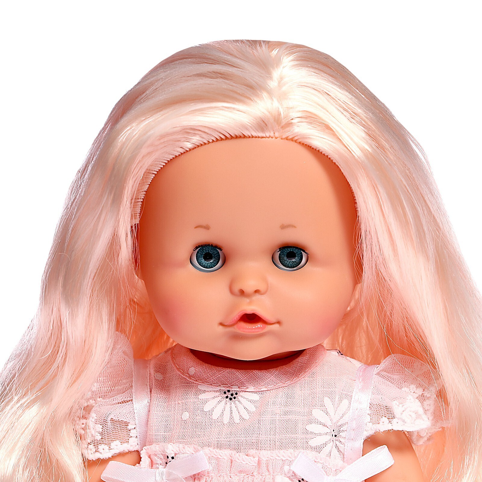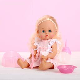 Малышка пьёт, писает напрямую (кнопки нет). Если положить куклу спать, она закроет глаза. На длинных волосах ребёнок потренируется делать красивые причёски.