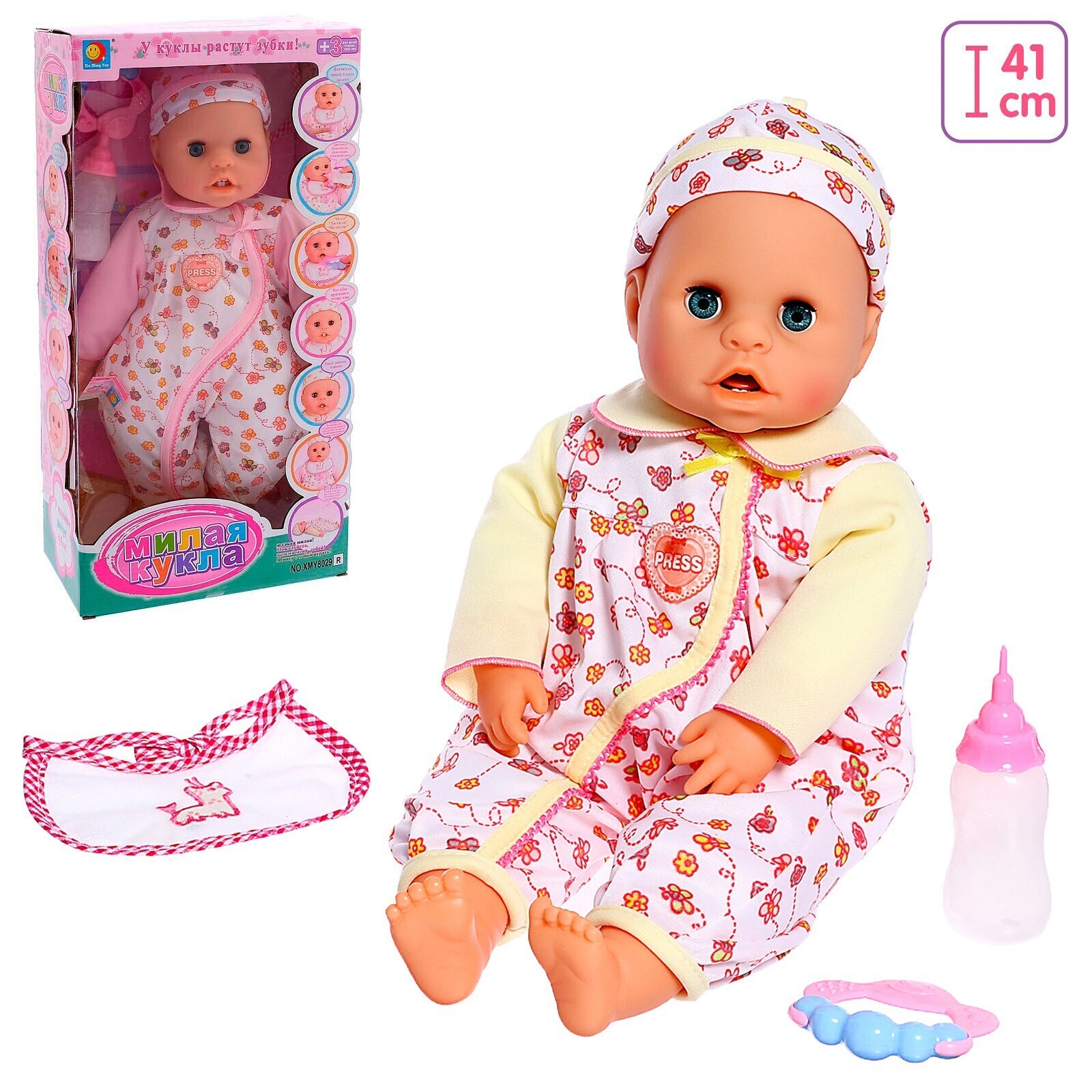 Интерактивный пупс «Крошка», 4 функции, звук, двигается язык, растут зубки, цвет жёлтый