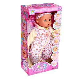 Кукла произносит слова «мама», «папа», плачет и смеётся.