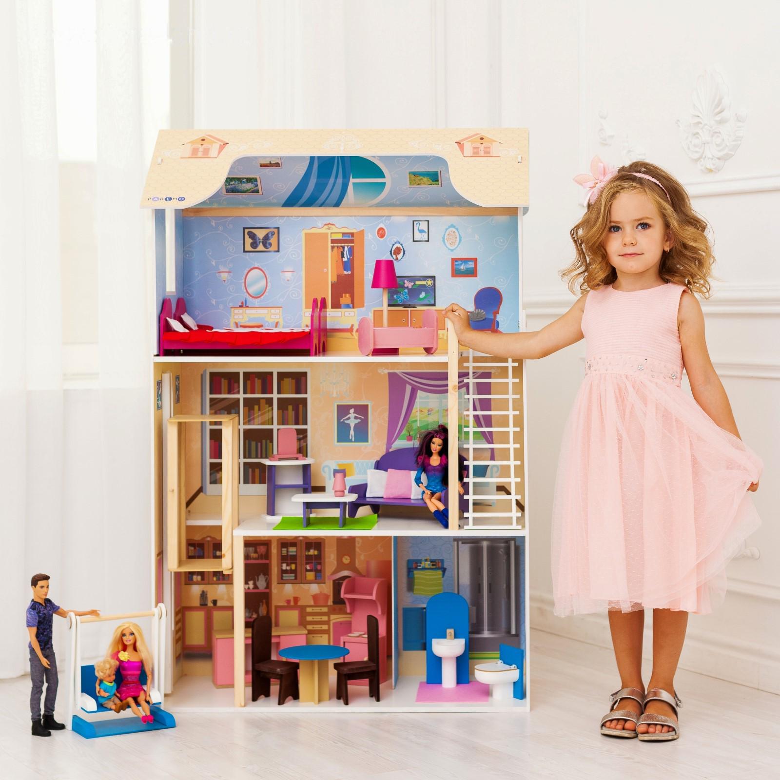 Кукольный домик «Грация» (16 предметов мебели, лестница, лифт, качели)