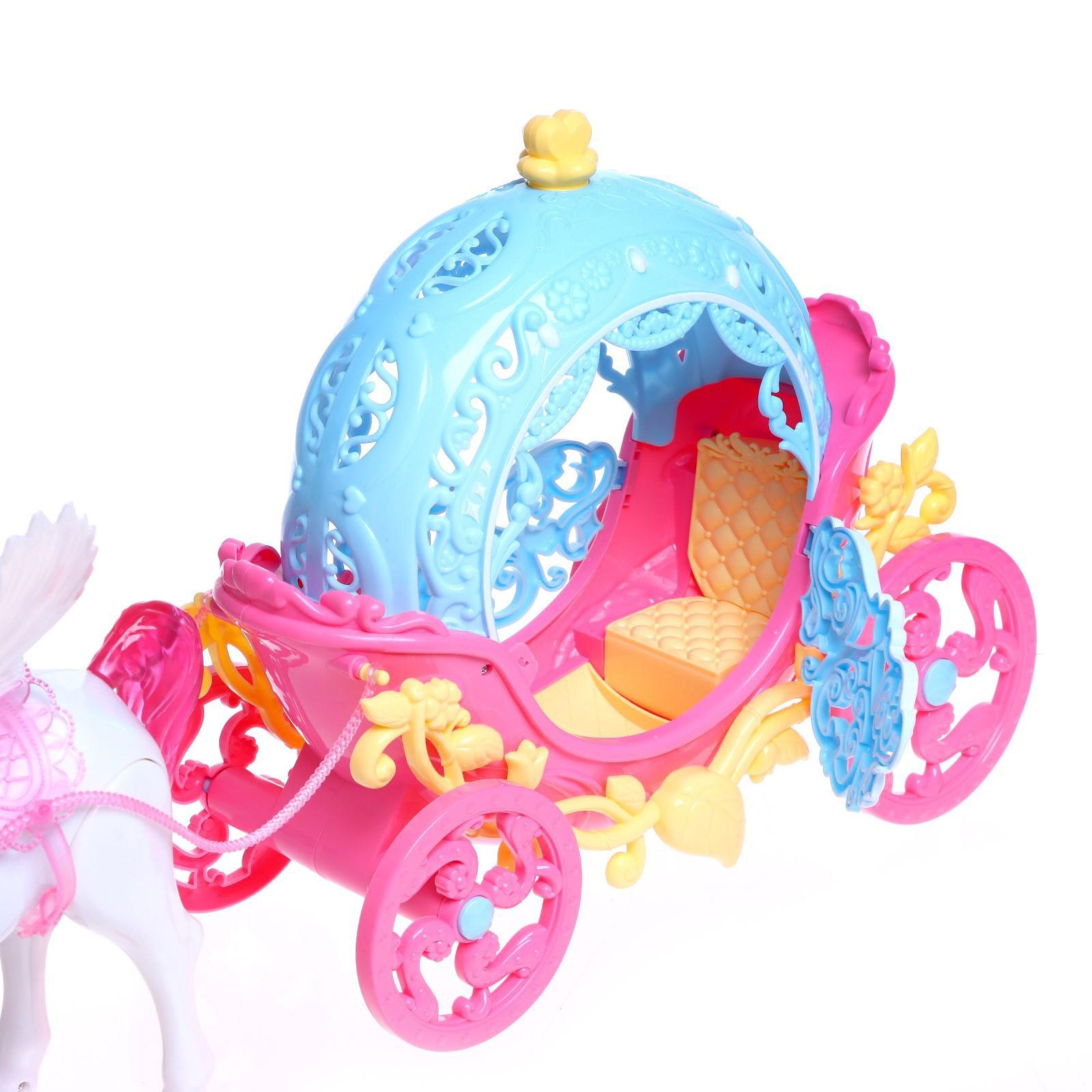Каждая принцесса заслуживает свою карету! Особенно, если это сказочный набор с запряжённой лошадкой! В таком транспорте можно отправиться на бал или даже в волшебное путешествие.