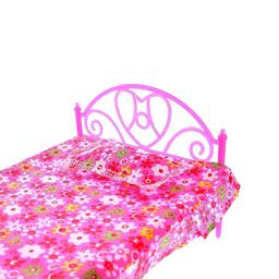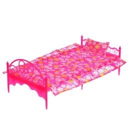 Кроватка для куклы дополнит интерьер детской комнаты. Каркас прочный, выполнен из пластика. Девочка с удовольствием уложит свою куклу на мягкую подушку и накроет одеялом с изображениями ярких цветочков.