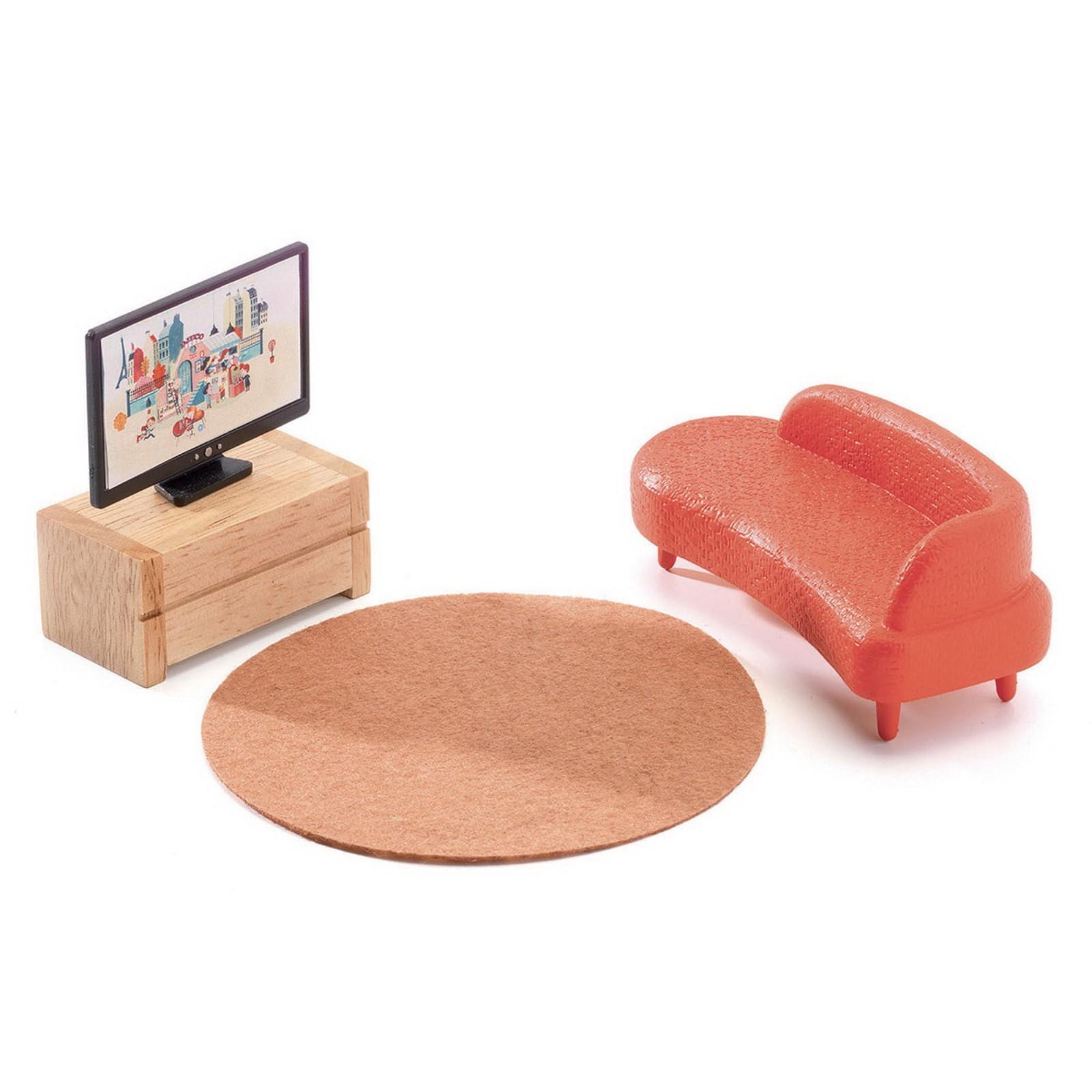 Мебель для кукольного дома Djeco «Городской набор» продаётся в красивой коробке и идеально подходит для подарка. Все детали изготовлены из высококачественных материалов.