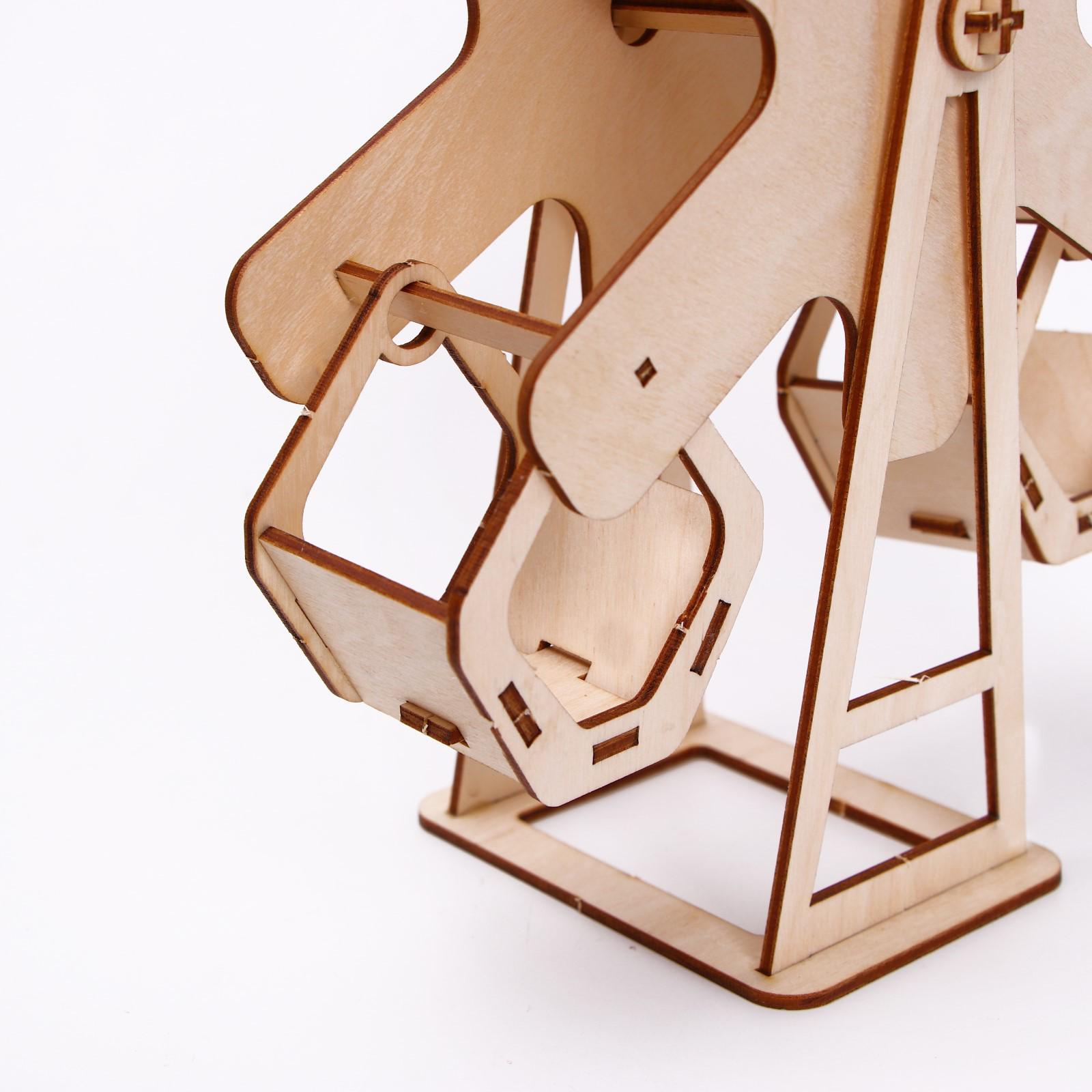 Создайте миниатюрный парк развлечений из деревянных деталей. Предметы мебели выполнены из качественной древесины и имеют насыщенный запах дерева.
