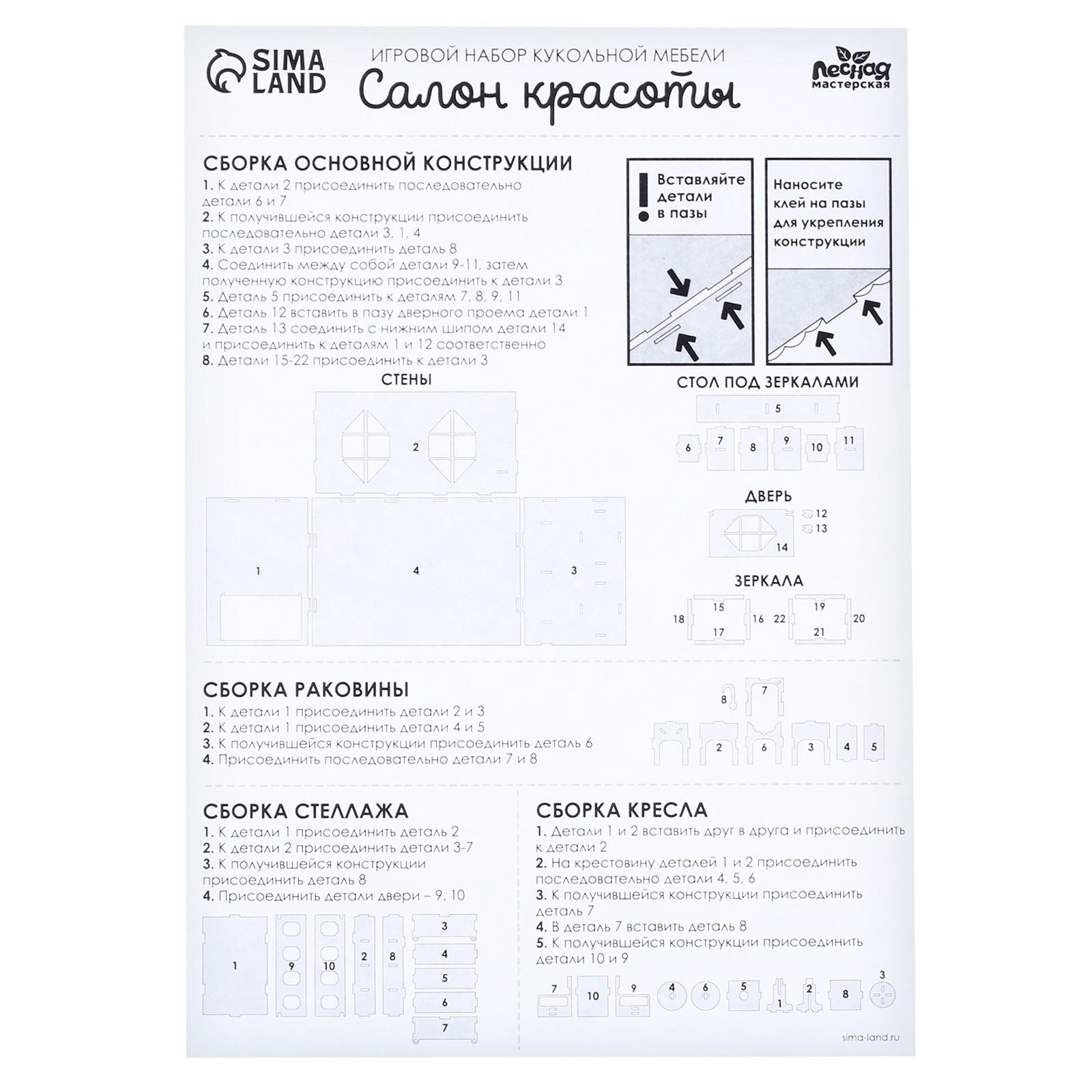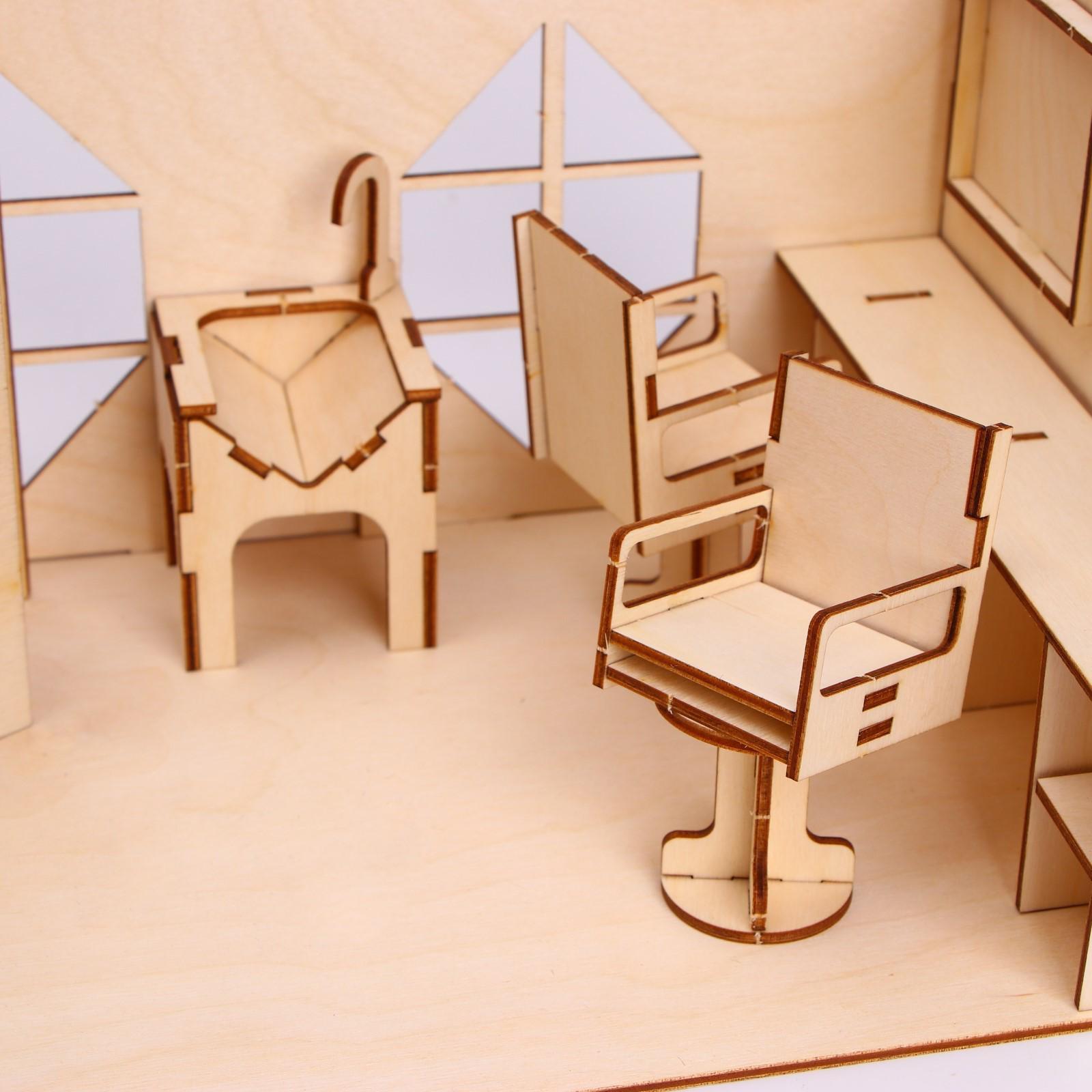 Создайте миниатюру салона красоты из деревянных деталей. Предметы мебели выполнены из качественной древесины и имеют насыщенный запах дерева.