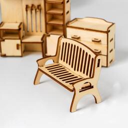 Создайте миниатюру настоящей комнаты из деревянных деталей. Предметы мебели сделаны из экологически натурального и безопасного материала. Изделия выглядят очень реалистично и идеально подойдут как для игр малыша, так и в качестве декора для детской.