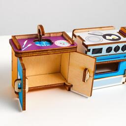 Создайте миниатюру настоящей комнаты из деревянных деталей. Предметы мебели сделаны из экологически натурального и безопасного материала. Изделия выглядят очень реалистично и идеально подойдут как для игр малыша, так и в качестве декора для детской.