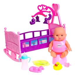Ваша принцесса любит играть в дочки-матери? Тогда от этого набора с куклой, кроваткой и аксессуарами для пупсов она будет в восторге! Ведь малышка сможет покормить, положить пупса в кроватку, укачать его и наблюдать за тем, как игрушечный карапуз сладко спит.