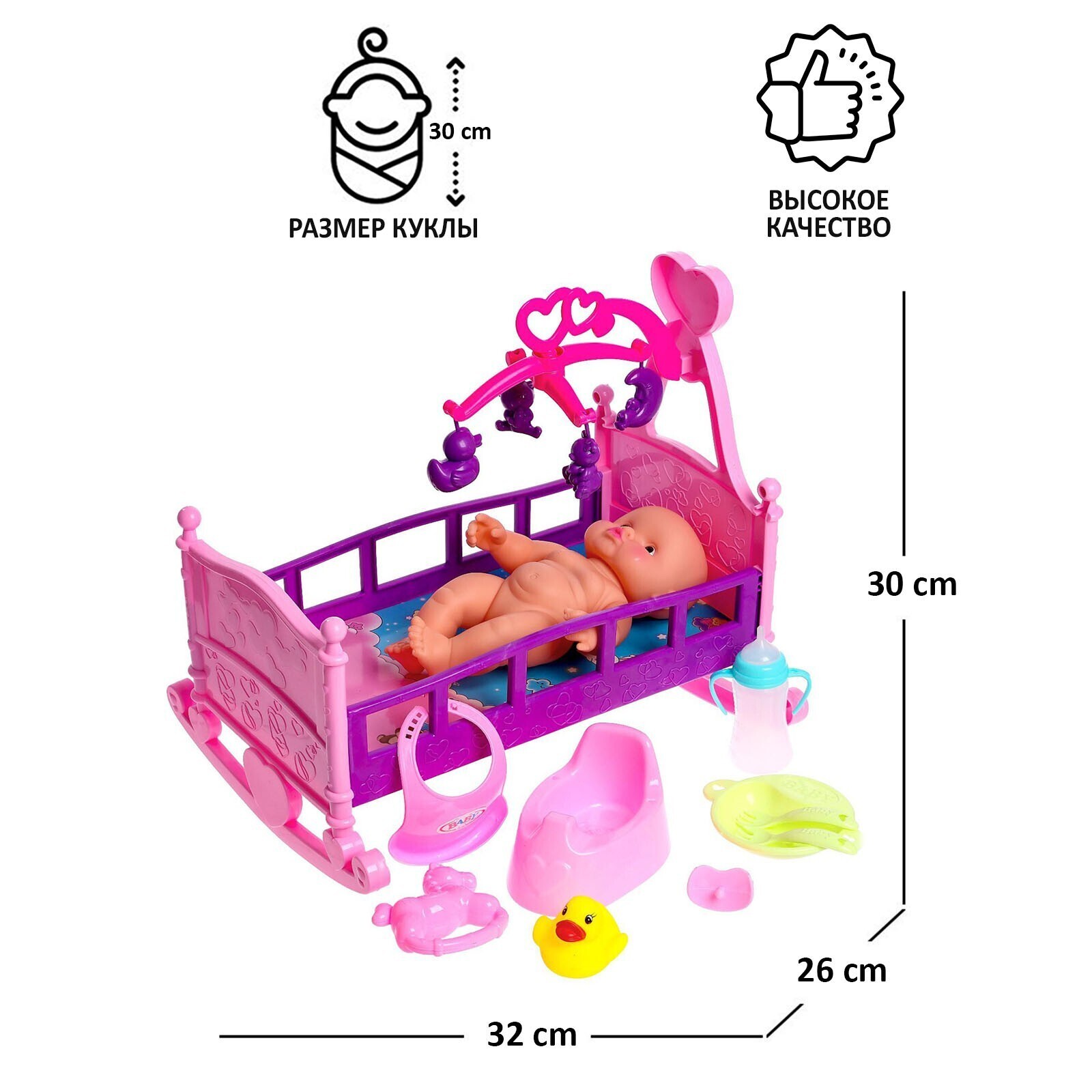 Кровать с пупсом, с аксессуарами