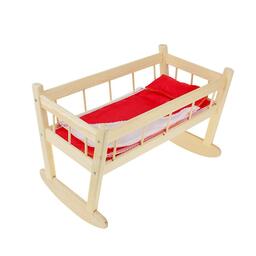 Кроватка классической конструкции станет замечательным приобретением для игр в дочки-матери. Девочка будет укладывать игрушки, заботливо укачивая. Модель изготовлена из натурального дерева и приятна на ощупь. В комплект входит подушка, одеяло и матрасик.