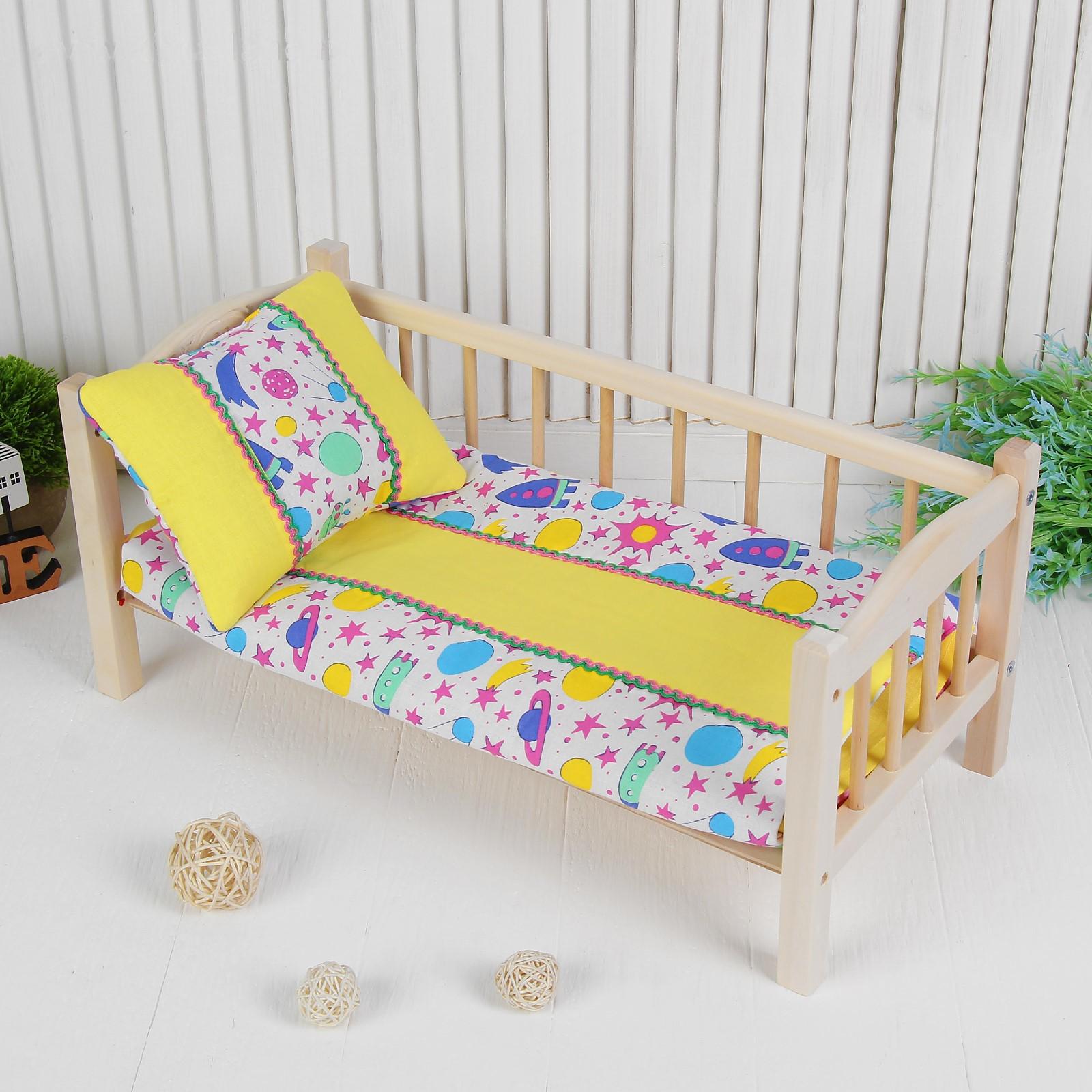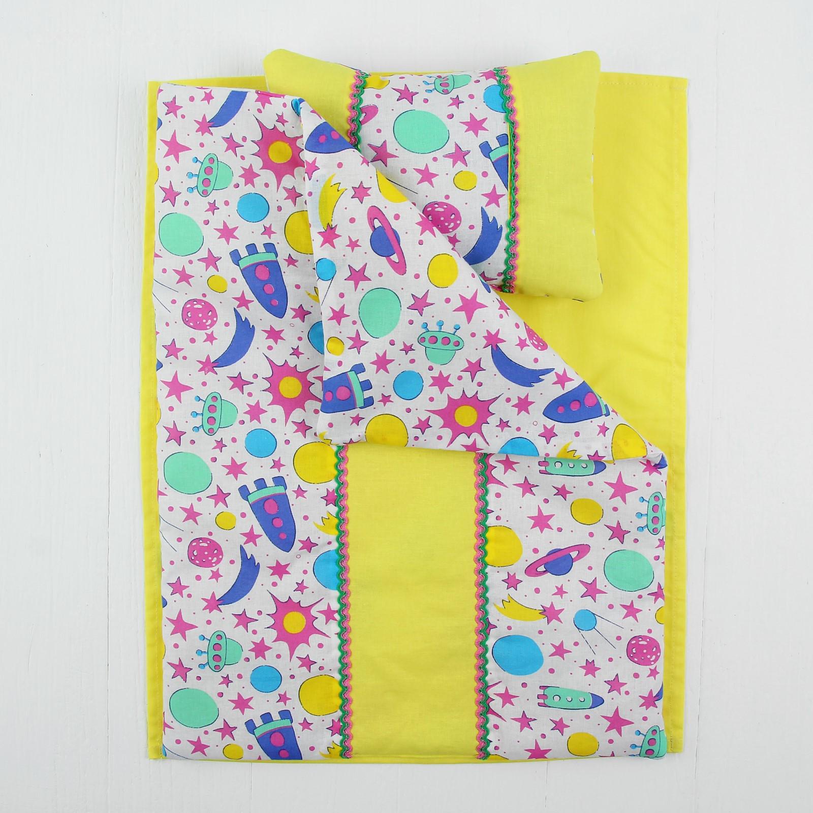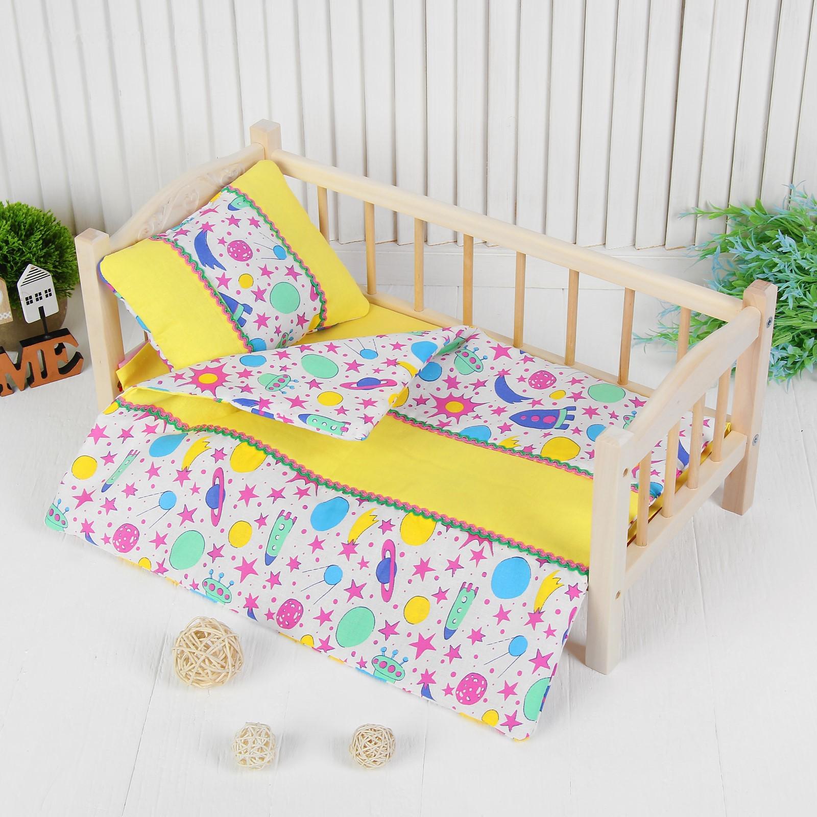 Постельное бельё для кукол «Ракеты», простынь, одеяло, подушка, цвет розовый