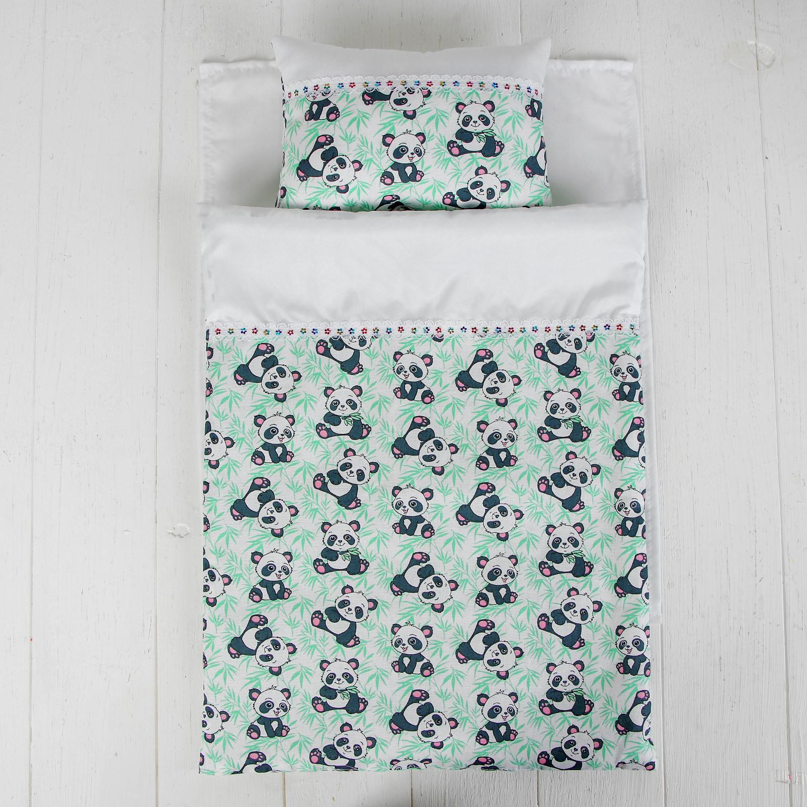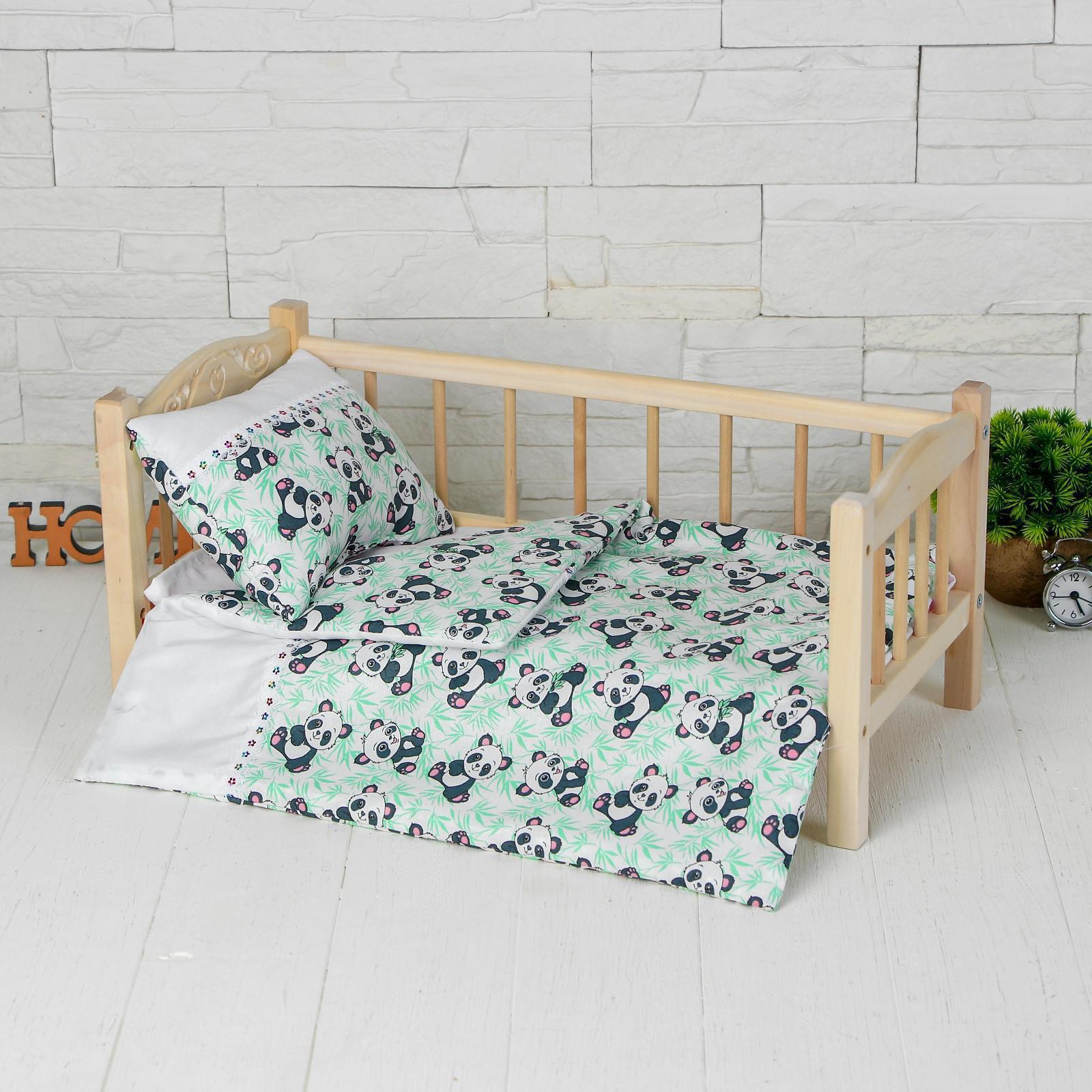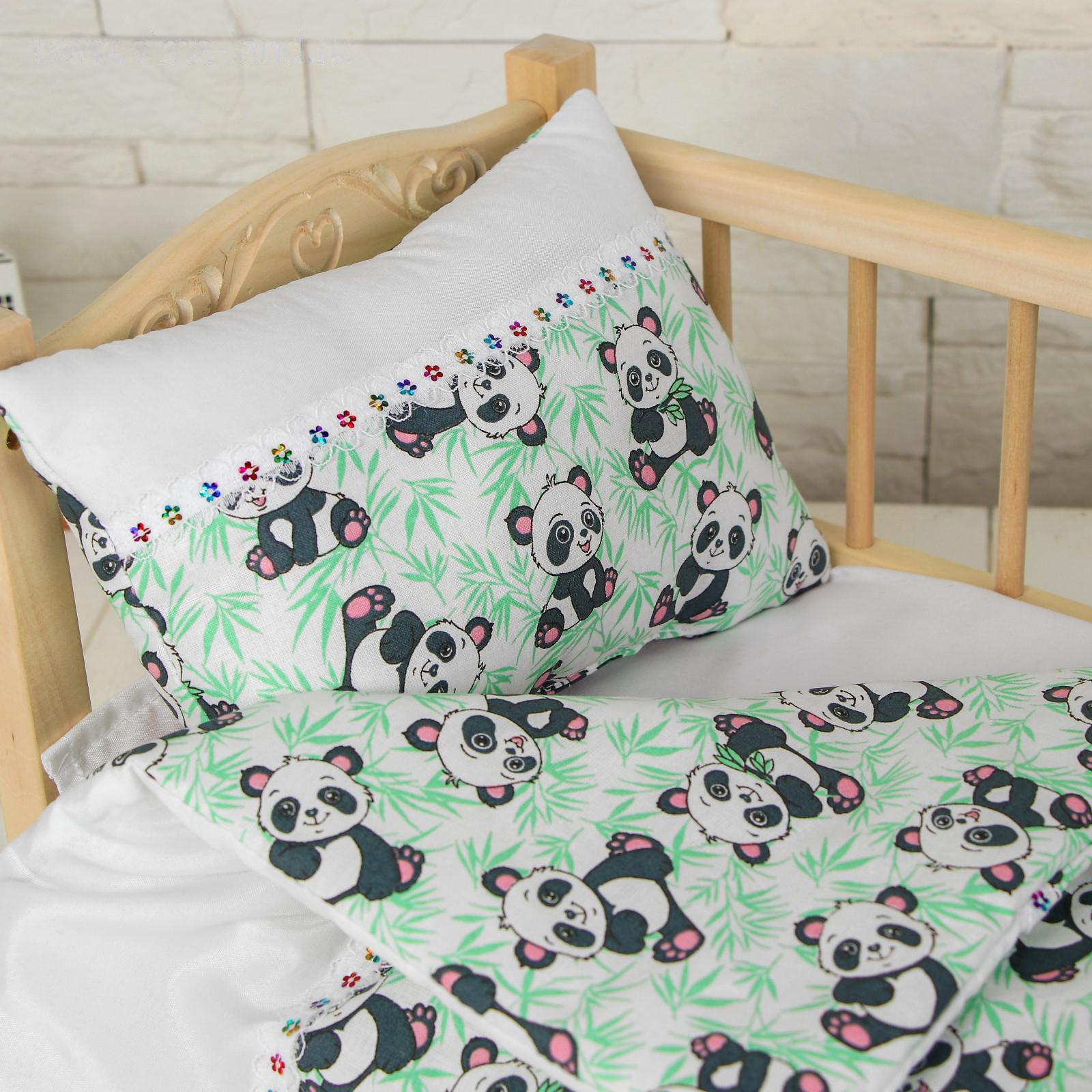 Постельное бельё для кукол «Панды на белом», простынь, одеяло, подушка