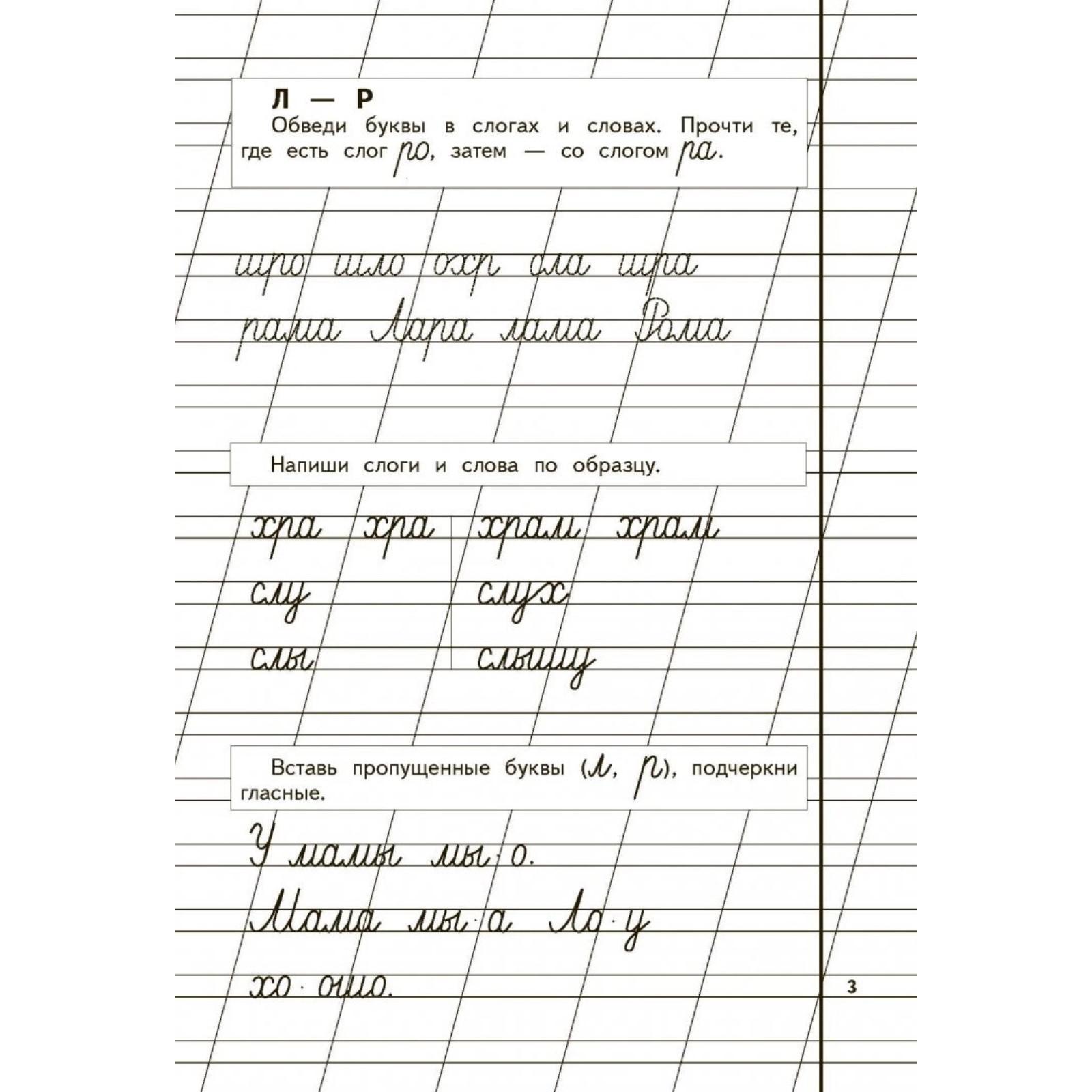 В основе обучения письму по методики Надежды Жуковой лежит слоговой принцип русской графики. Для удобства обучения материал прописей разделен на 3 тетради, с которыми желательно работать последовательно. В первой тетради изложены правила обучения написанию букв А, У, О, М, С, Ы, X, Р, Ш, Л, Н; во второй — К, Т, И, П, З, Й, Г, В, Д, Б, Ж, Е; в третьей — Ь, Я, Ю, Ё, Ч, Э, У, Ф, Щ.