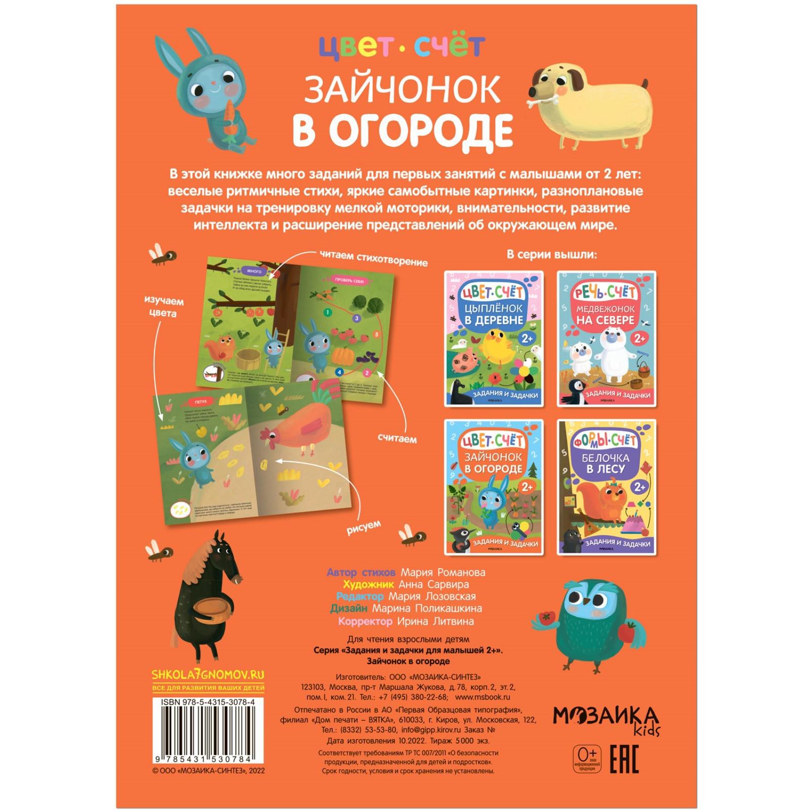 В книжке «Зайчонок в огороде» серии «Задания и задачки для малышей 2+» ребёнок побывает в огороде, узнает, что там растет, познакомится с разными цветами, научится считать до 5, дорисует картинки, а также потренирует логику и воображение. А в конце книжки его ждёт запутанный лабиринт!